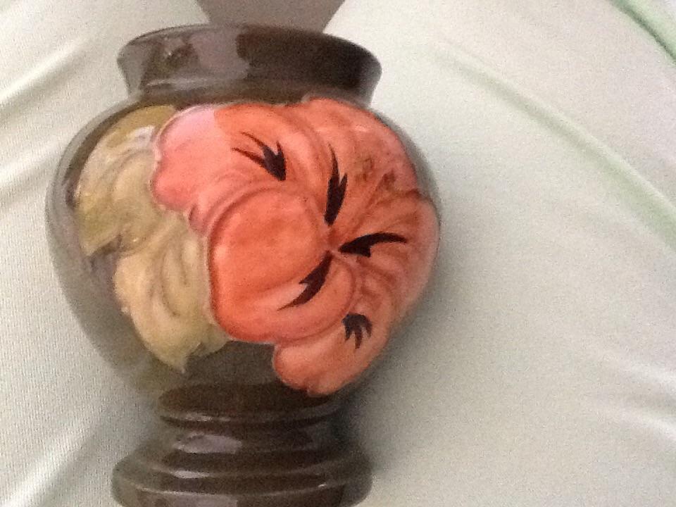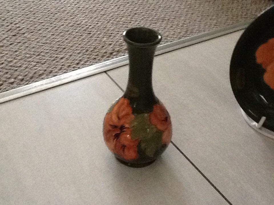 the biggest one about 18 cm diameter the next 16 cm diameter then two the same size of 10 cm diameter then two little vases of ten cm height one tall vase with narrow spout 16 cams height and the last fat vase at13 cm height