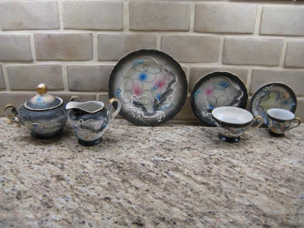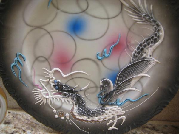vintage Nippon dragonware in classic black and gray glaze , Lucky manufacturer stamp and Japan on bottom