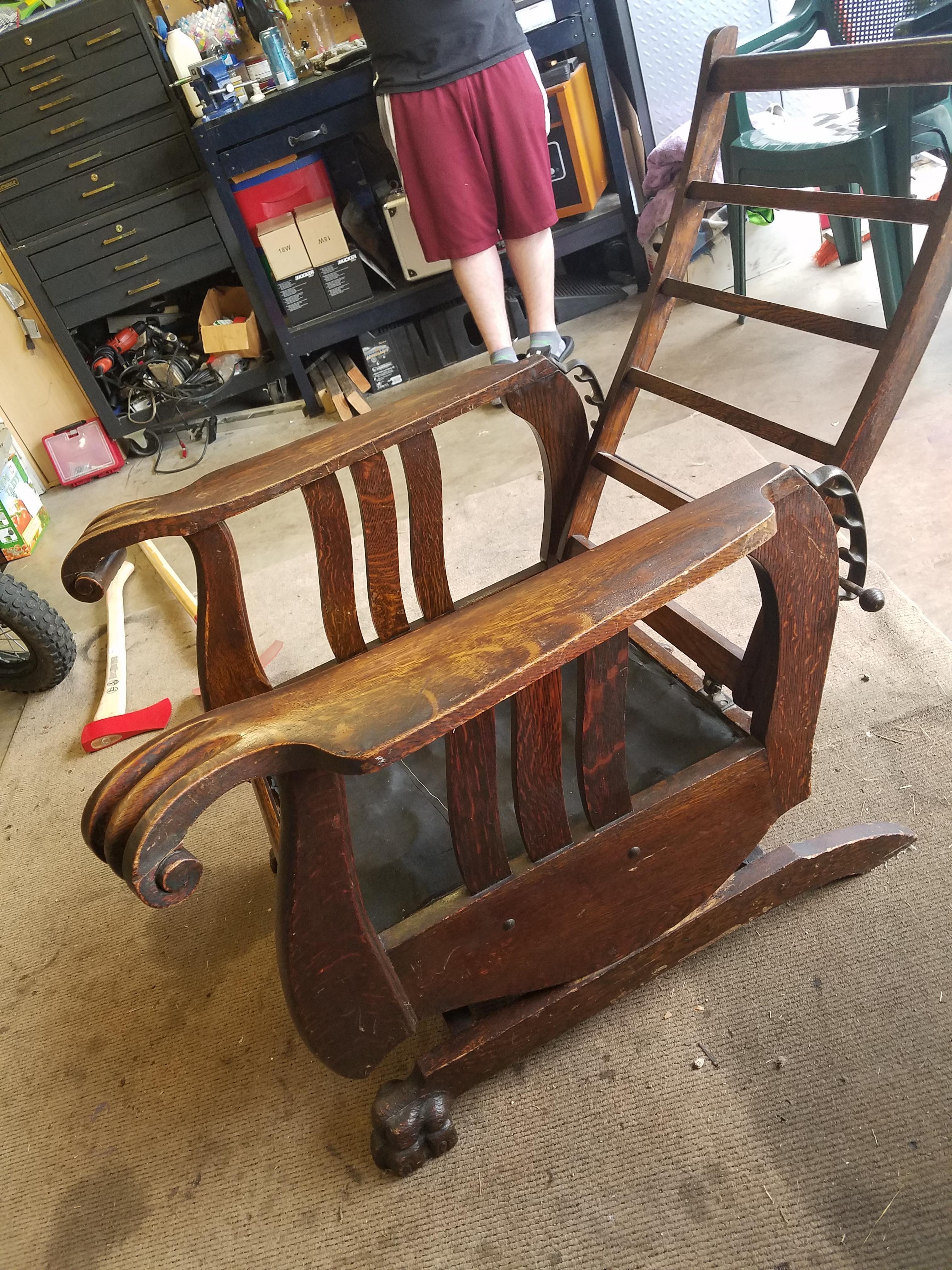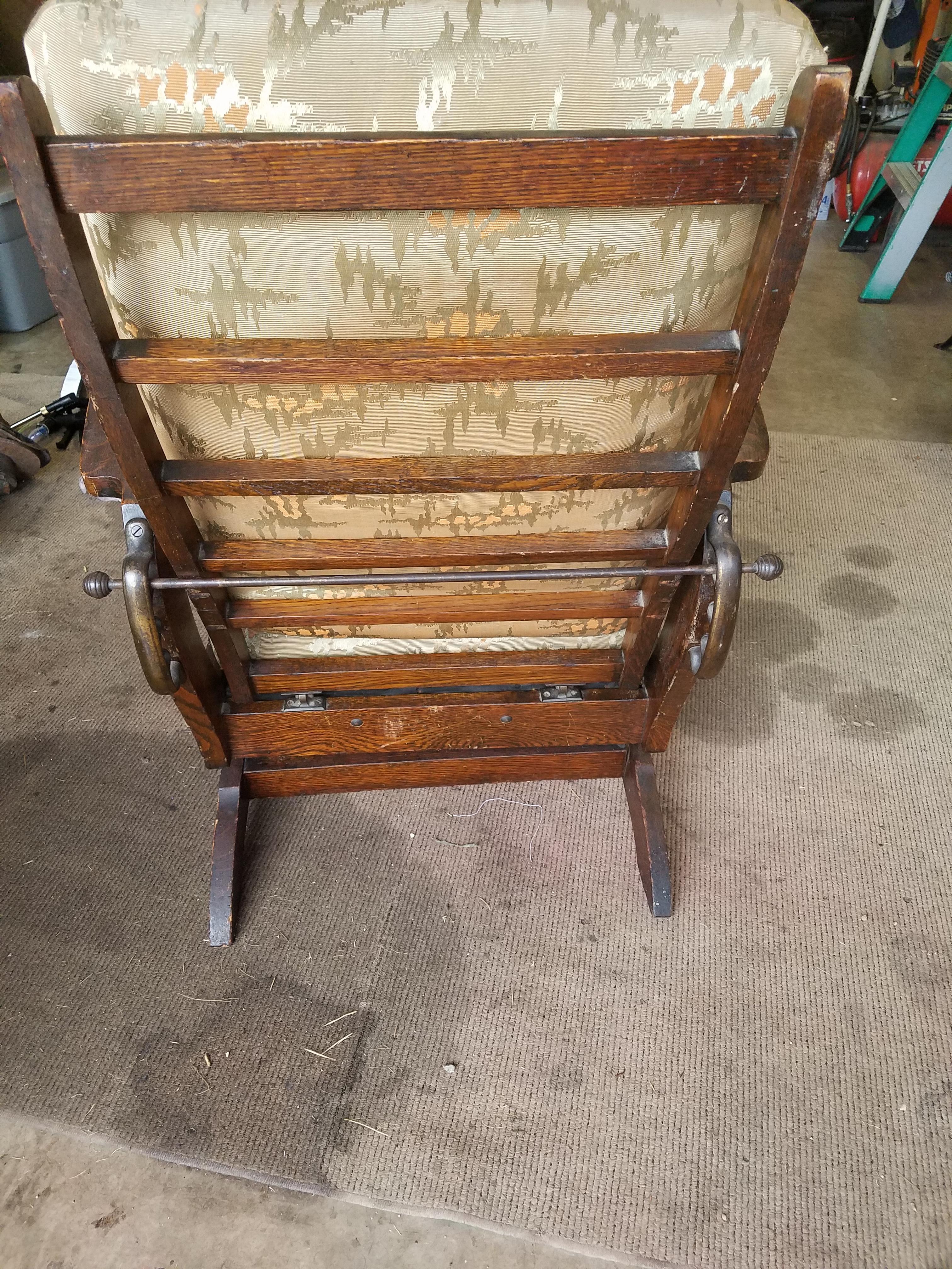 We think this is a Morris recliner / rocker. No markings at all other than ATAPFOR on the hinges.