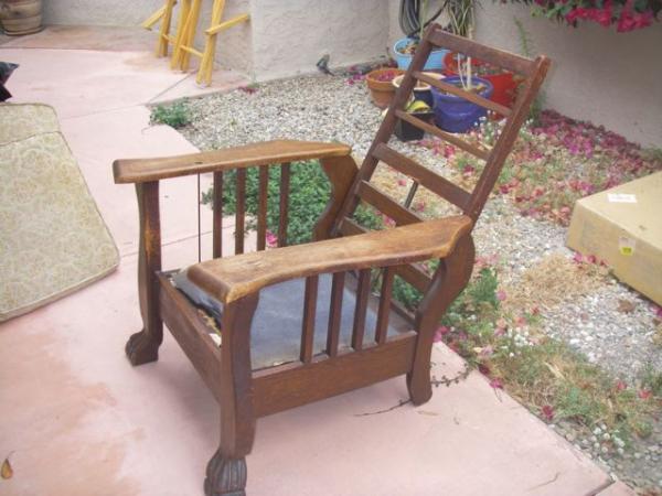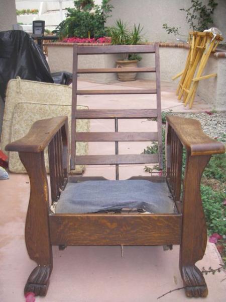 I'm not familiar with Morris chairs and need a little help identifying the specifics of the chair and the worth of the chair as it is now and what it could be if I was to professionally restore it. This chair has the back recliner release in the right hand arm rest (not working). I bought it from a young lady who claims it was passed on to her by her aunt who bought it 30 years ago from an antique dealer that she worked for at the time. I liked the look and wanted to refinish it to a look that will fit a room I'm redecorating but thought I would check to make sure I was not making a cardinal sin. I figured this chair is probably not unique am I wrong? thank you for your help.