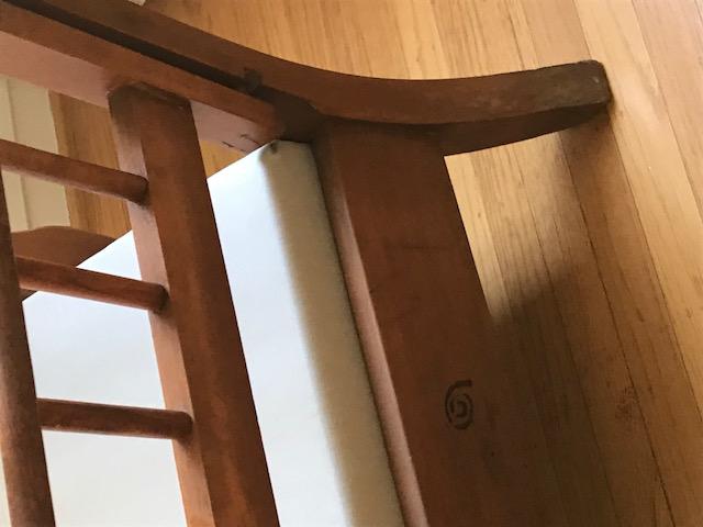 Distinguishing marks circular mark on arms of each chair and on back support piece