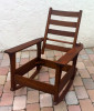 I have two Morris style adjustable chiars with vertical back spindles and a circle insignia on the ends of the arms and the backs of the chairs.