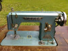 Black sewing machine in a wooden carrying case ,base of case attached to machine. Machine is great condition , box has a few marks on it.