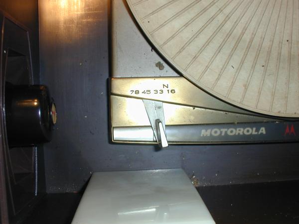 Vintage Motorola Three Channel Hi Fi Stereophonic Console Record Player. Plays 78, 33 and 45 records. In good condition, except for some wear on top of lid.