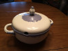 This is a 9" round serving bowl from Mottahedeh design which was part of my mother's collection although I have had it for about 10 years. I don't know where or when she bought it. It is white with a black design. Inside the bowl on the bottom is a child on a swing. Around the outside are 2 young women leading a third one who is blindfolded, while a fourth young woman crouches nearby. Perhaps they are playing a game. Around the other side are two more young women.