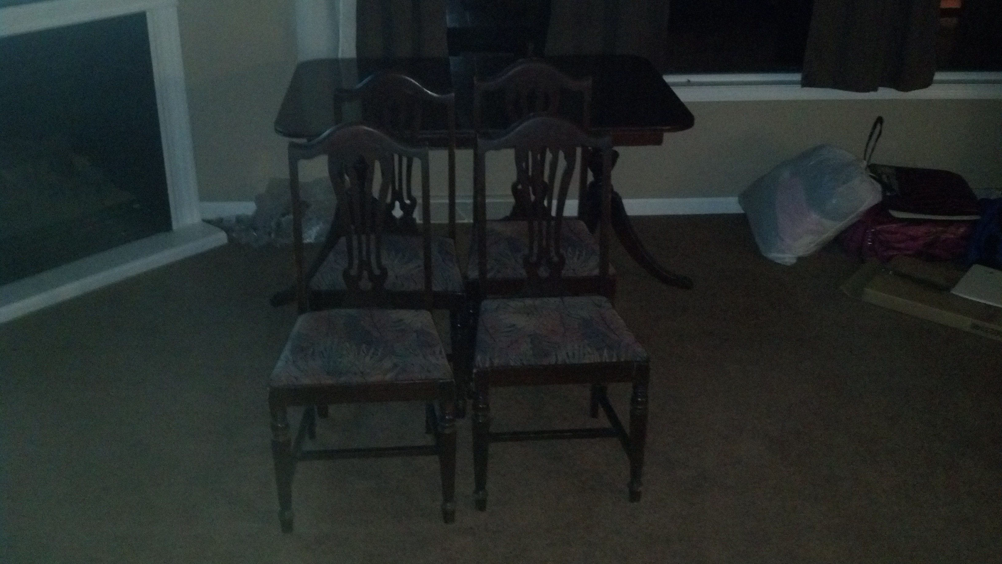 I have a complete dining room set made from Mount Airy mantel and table co. The set includes 6 chairs, the table, a leaf that is attached already to the table, and table cover.
