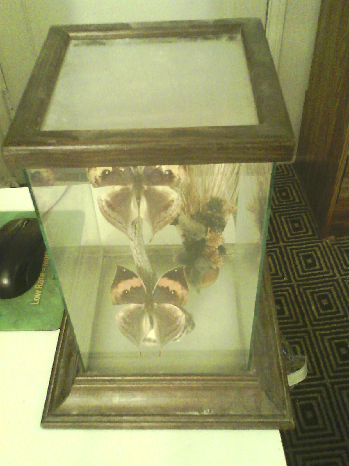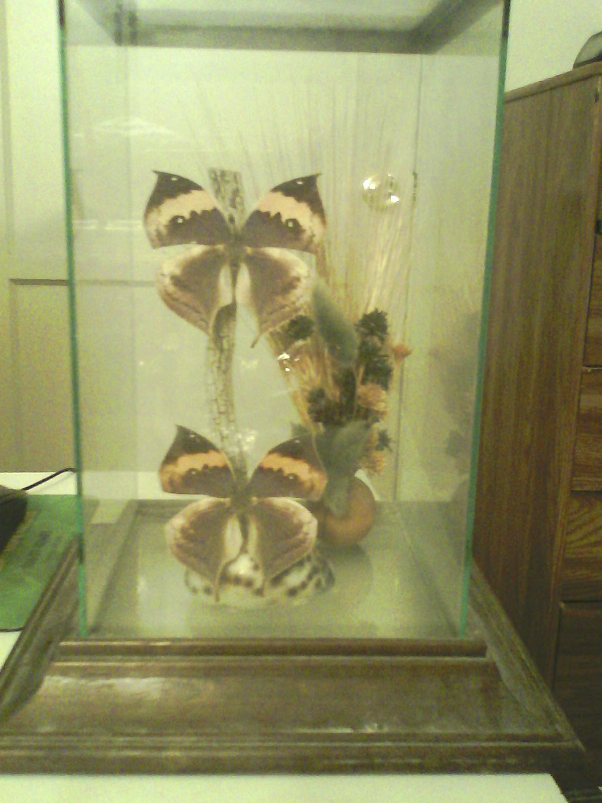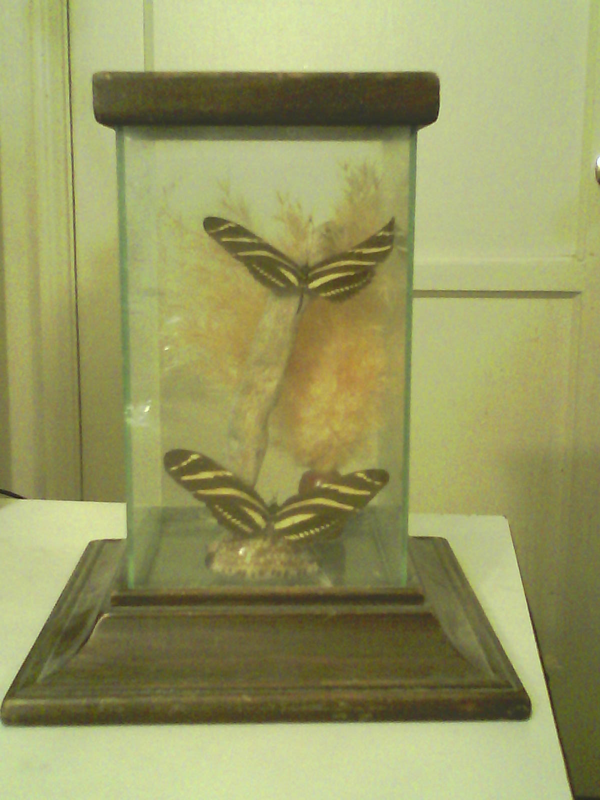 The smaller box contains what looks like a Zebra Longwing butterfly.