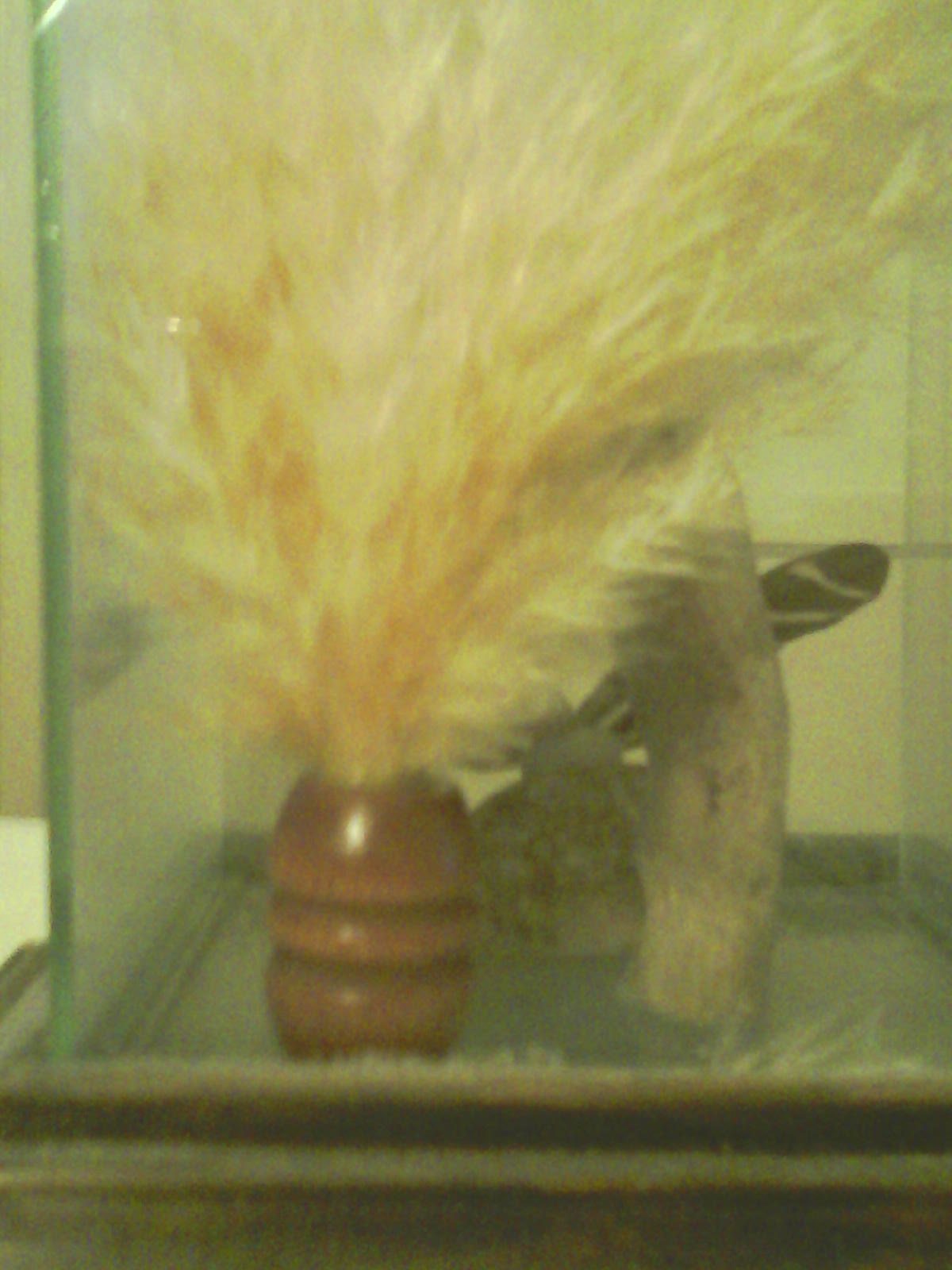 The plants, wood and cowry shells inside look real.