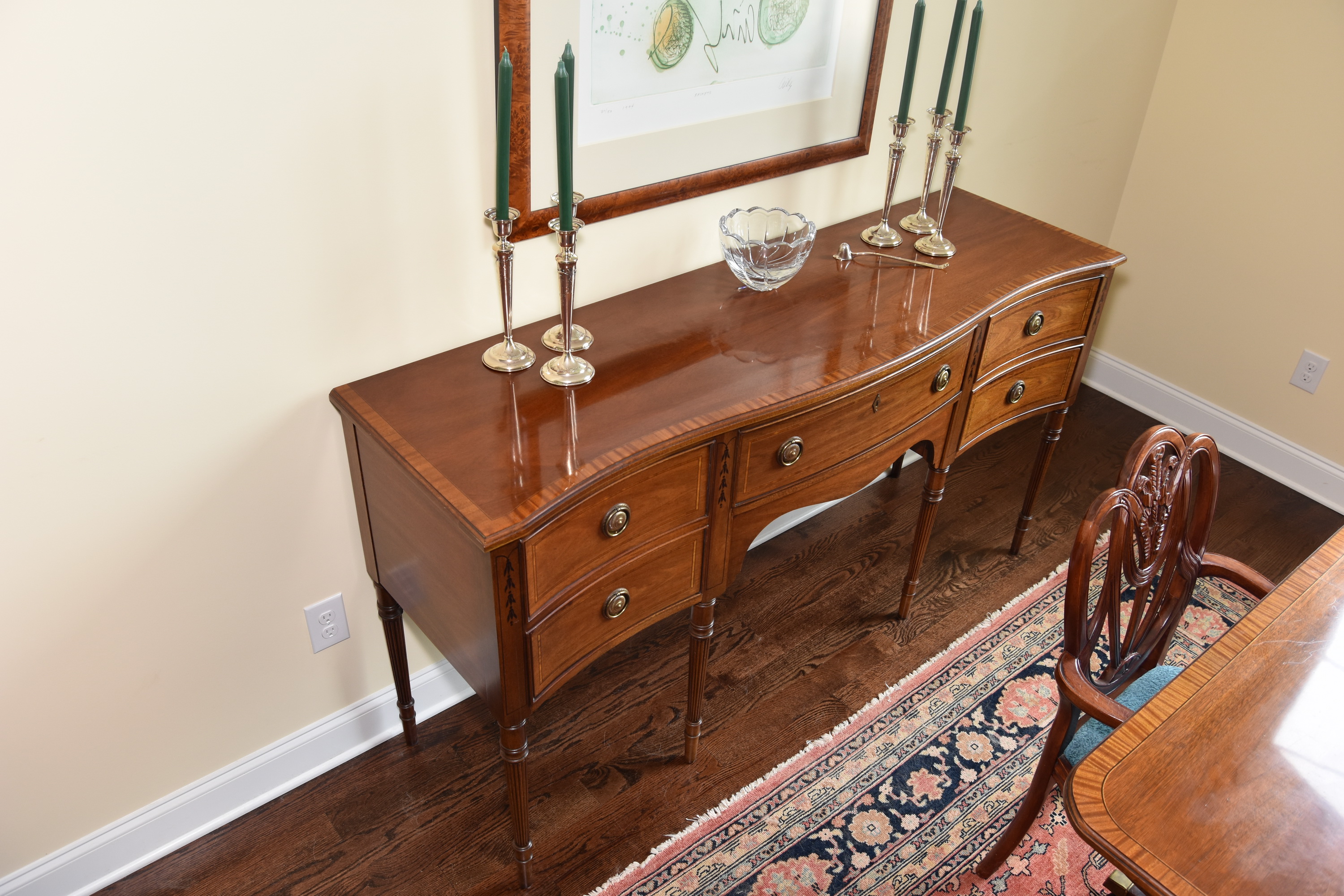 Looking for a value on a Mt. Airy Table and Sideboard. There are 2 captains chairs and 6 regular chairs that are hand carved and of Polynesian origin unknown manufacturer.
