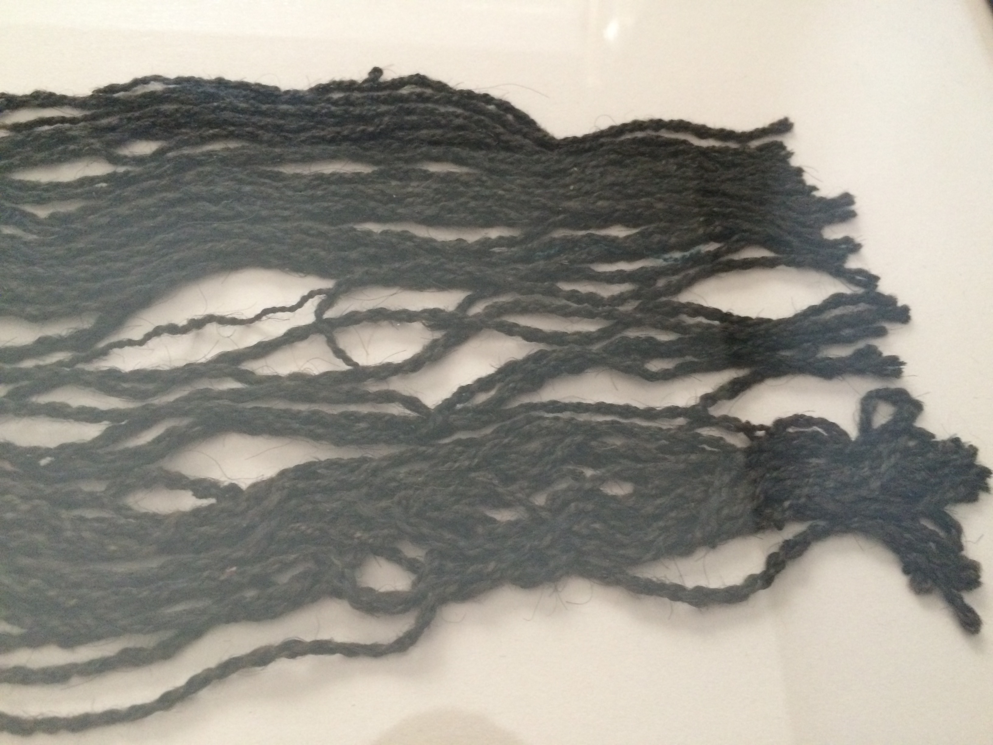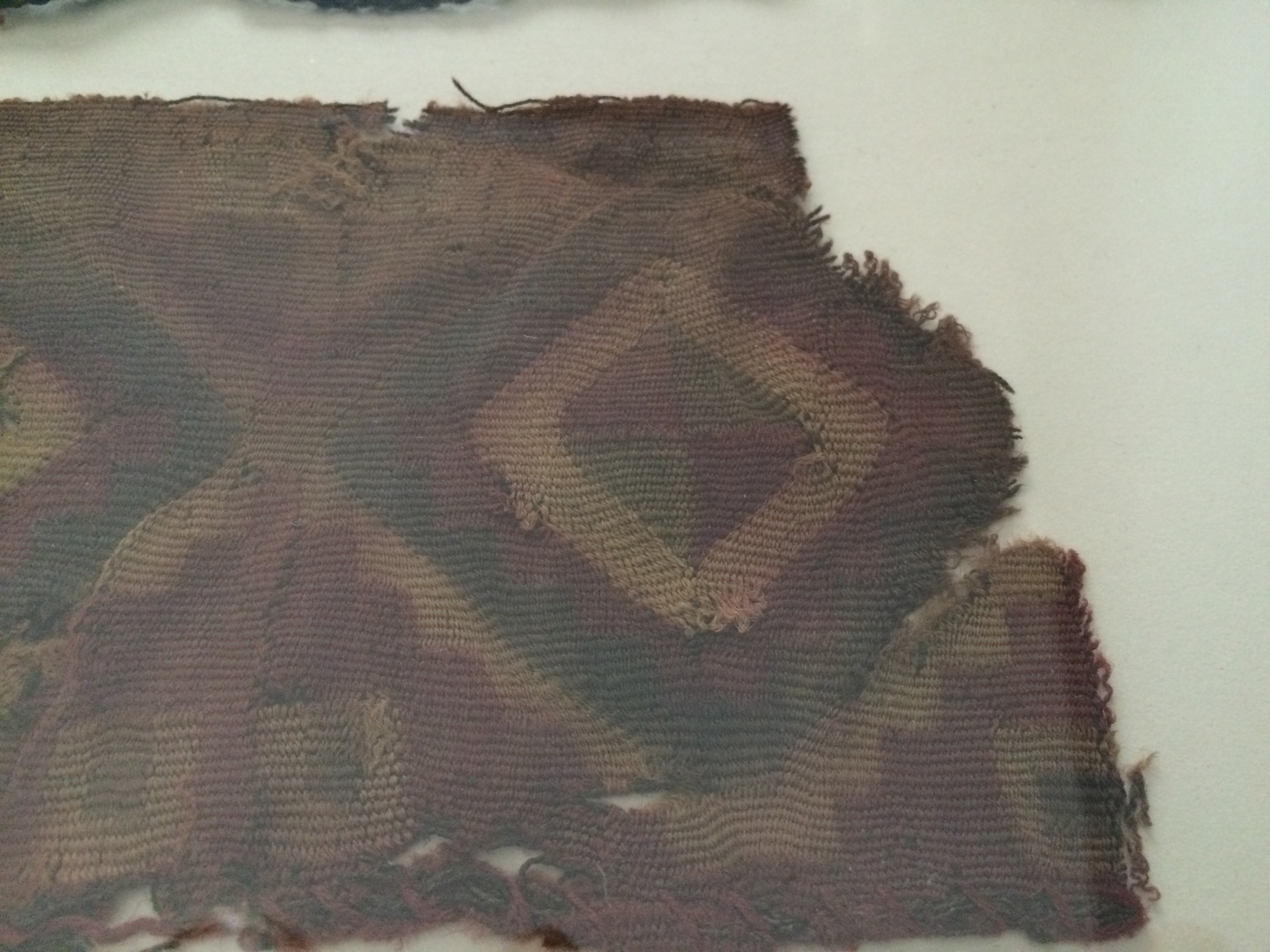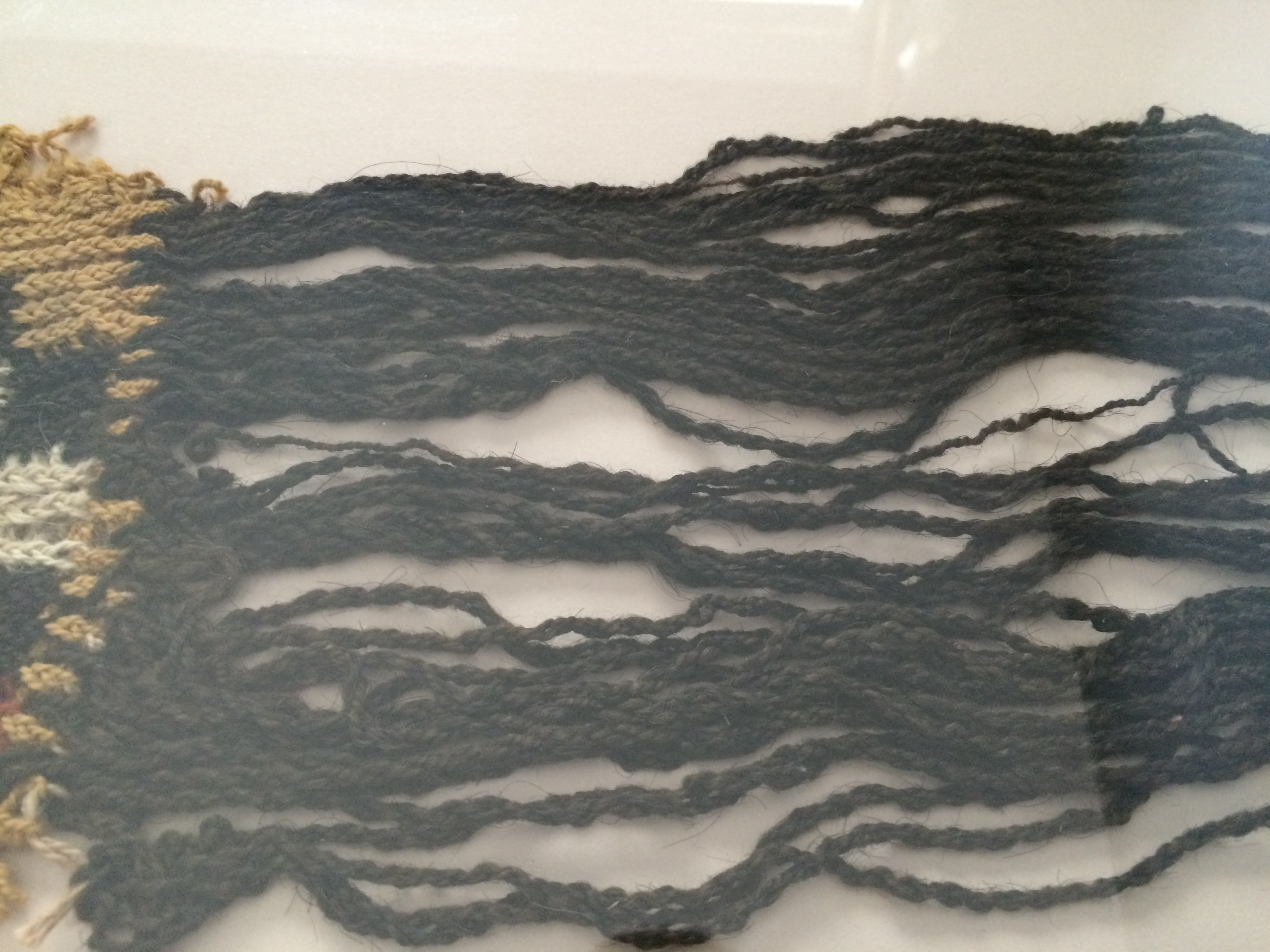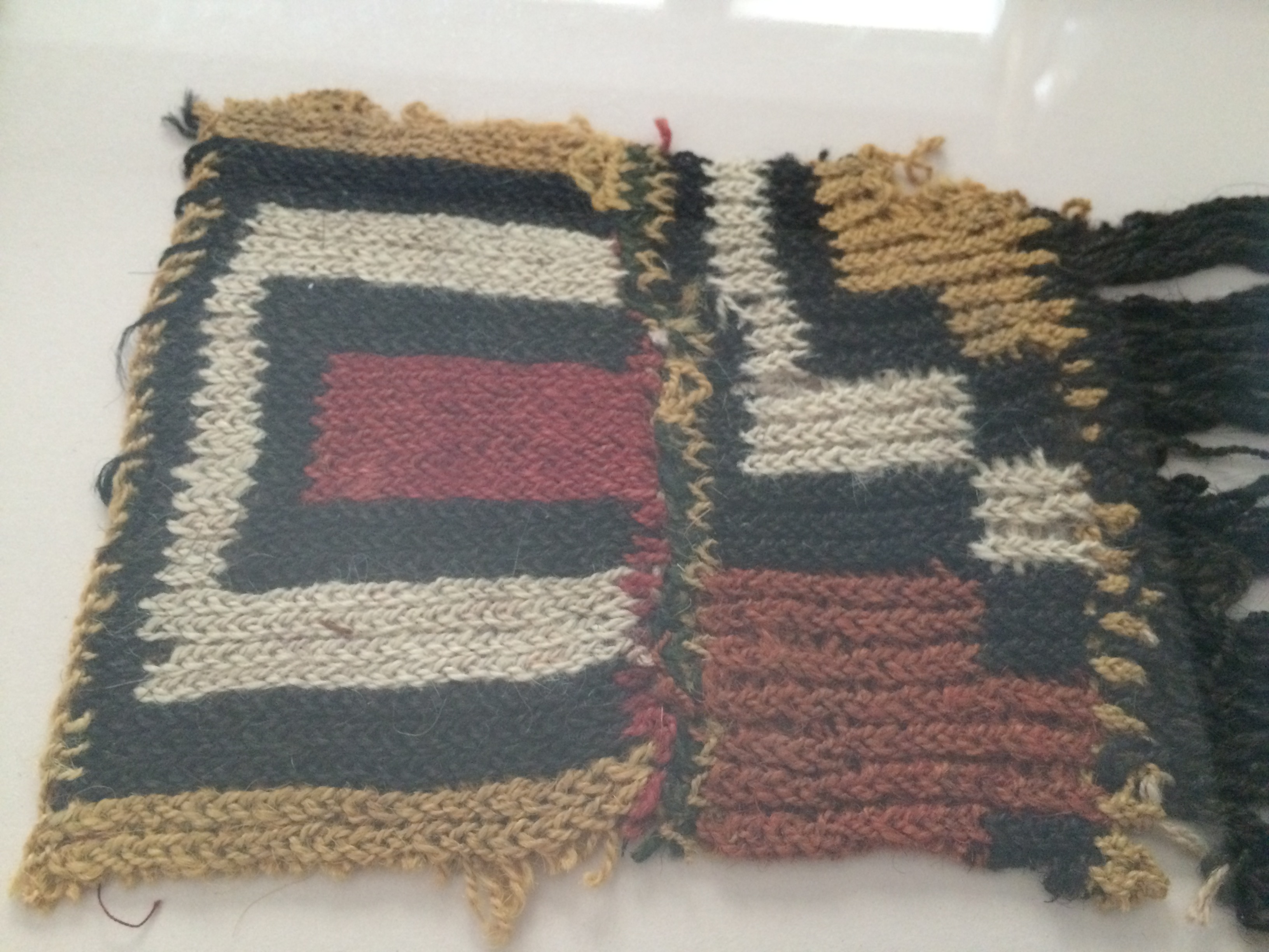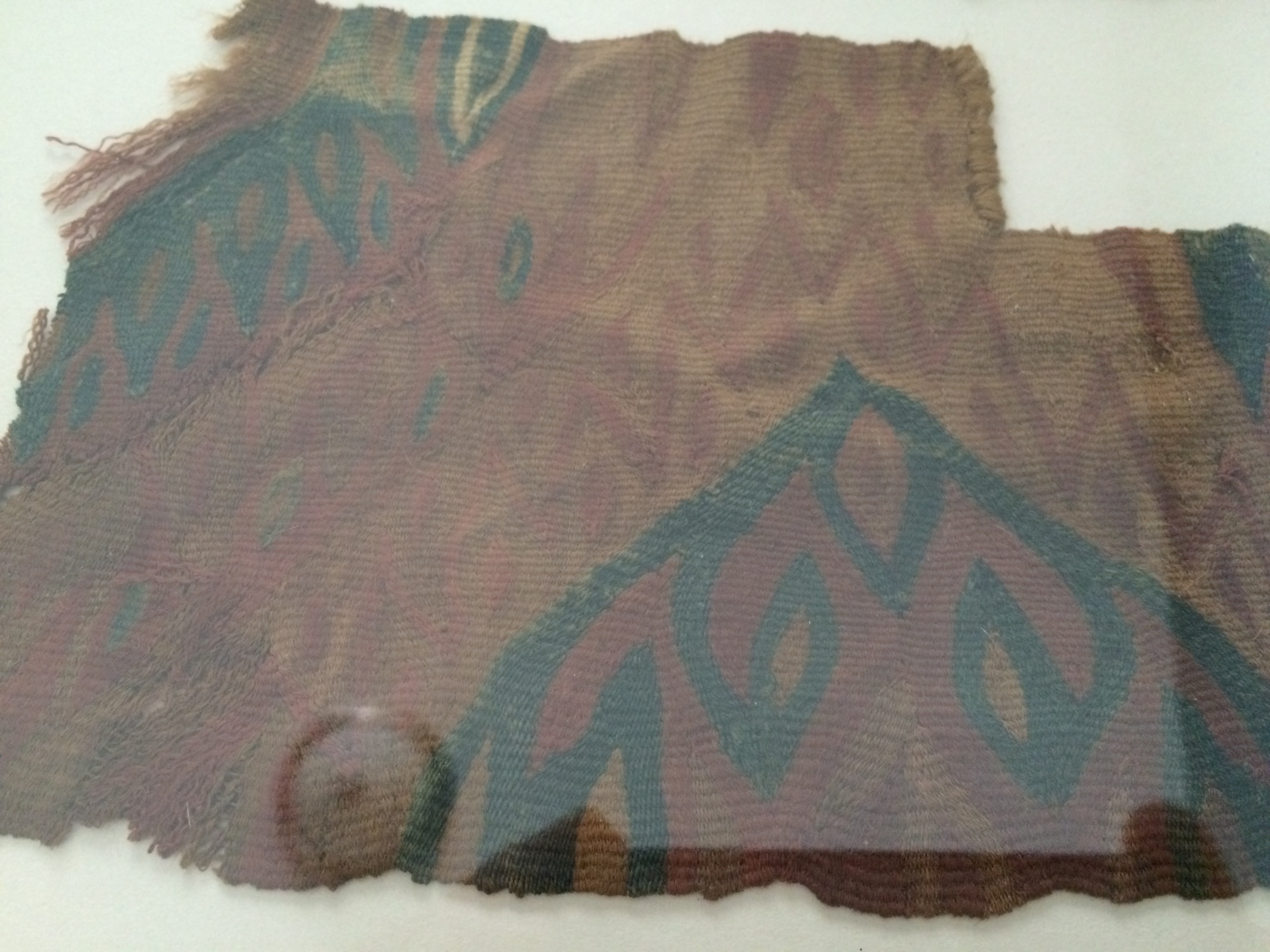 When I lived in Chile I was gifted these pieces of mummified cloth. They were taken from the Nazca desert in Peru. It is now illegal to remove these from the country as they are considered part of the national treasure. I also have a small chain of woven children connected by their hands, like paper dolls.