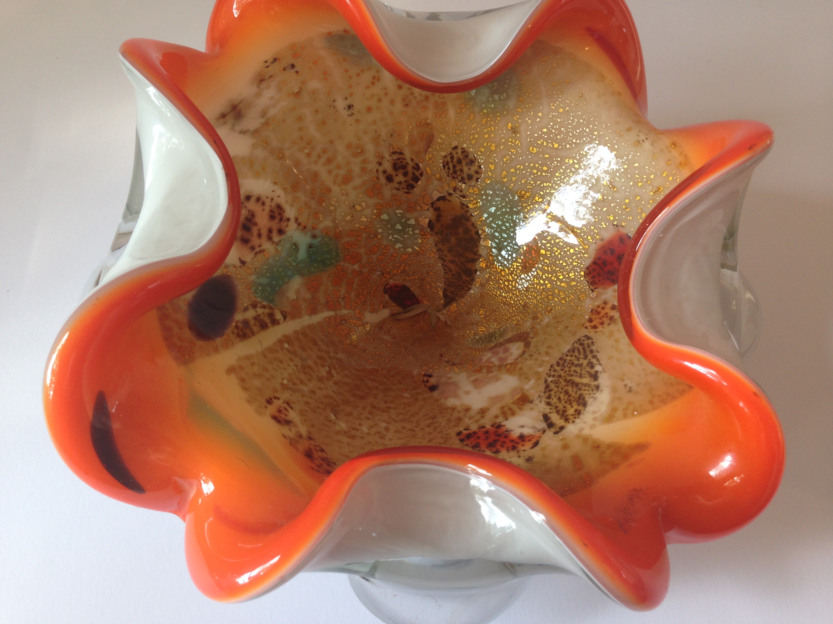 I have been doing a bit of research into murano glass and it looks like it could be a piece of avem tutti frutti glass? I got given it from a friend several years ago and do not know where they got it from originally.