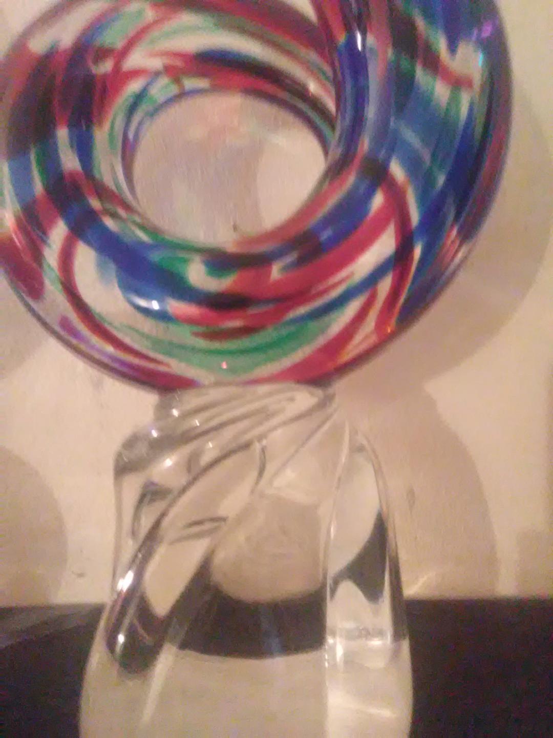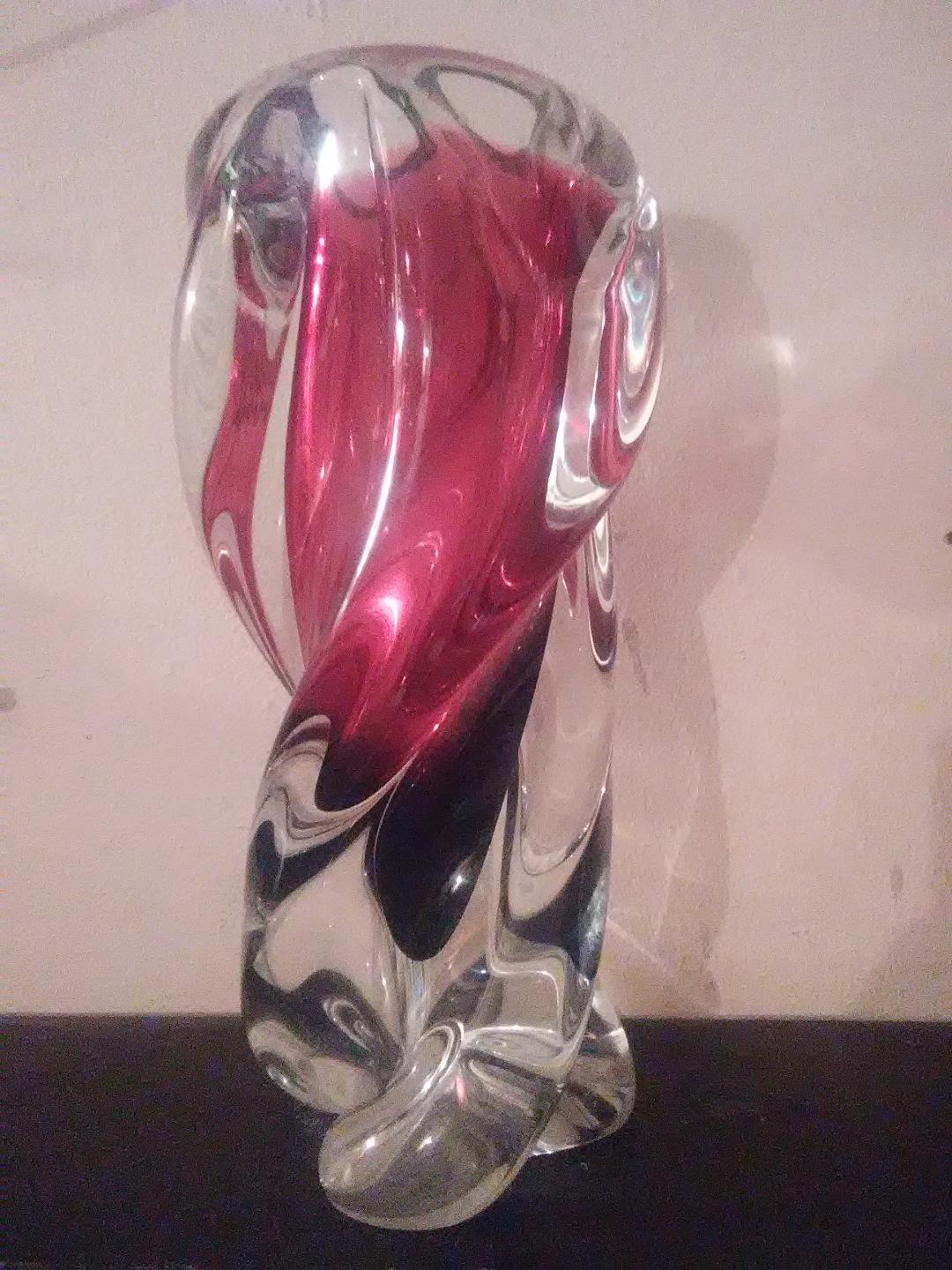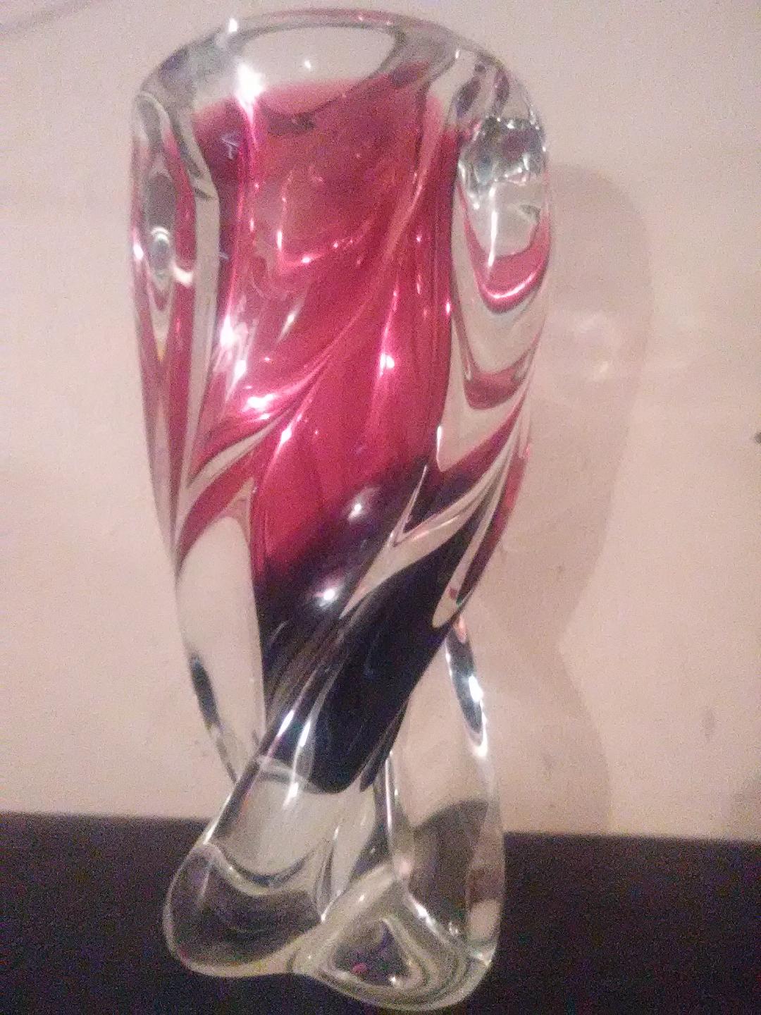 Hello, I have a pair of Murano Glass Sculptures. One is red, blue and green. It is 20 3/4" tall, 7 1/4" wide, 5" deep and is on a base that is 4" tall and 3 3/4" wide. The other is red, blue and has a small amount of green. It is 20" tall, 6 1/2" wide, 4" deep and is on a base that is 3 3/4" tall and 4 1/4" wide. They weigh 12 pounds each. The vase has red and black and is 10" tall, 5" tall at top and 4" wide at bottom. It is 4 1/2" deep with an inner width of 3". It weighs 8 pounds. They are all in excellent condition, with no chips or cracks. Thank you for your time.