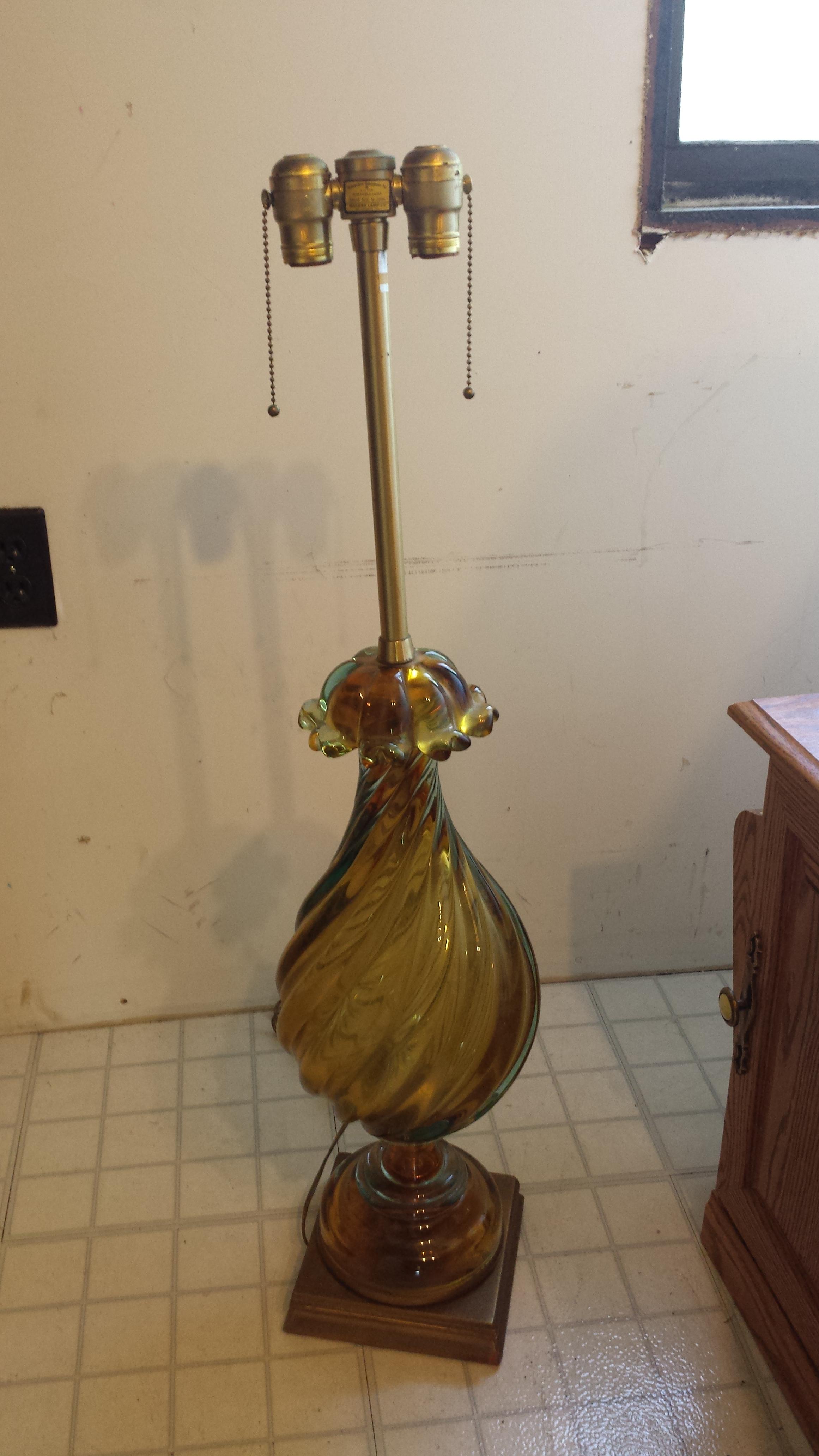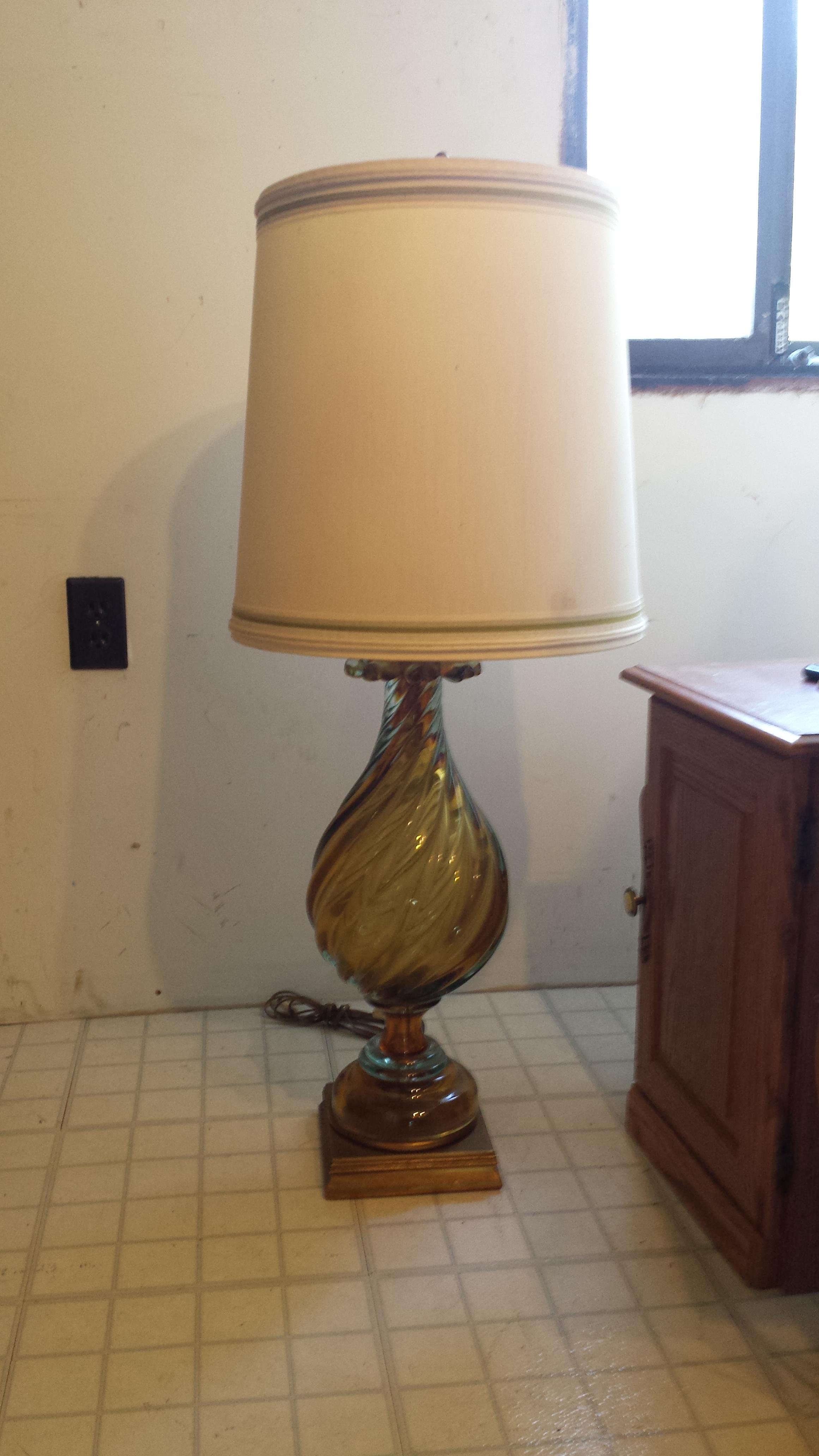 1969 glass hand blown teardrop Murano table lamp of champagne, perfect condition, all original