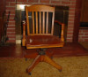 Description this is an oak swivel secretary or stenographers office chair in excellent condition, steel hardware, approx. 40" tall, patent number is 1937, all original, slatted back, adjustable height, hardware marked Murphy Chair Co.