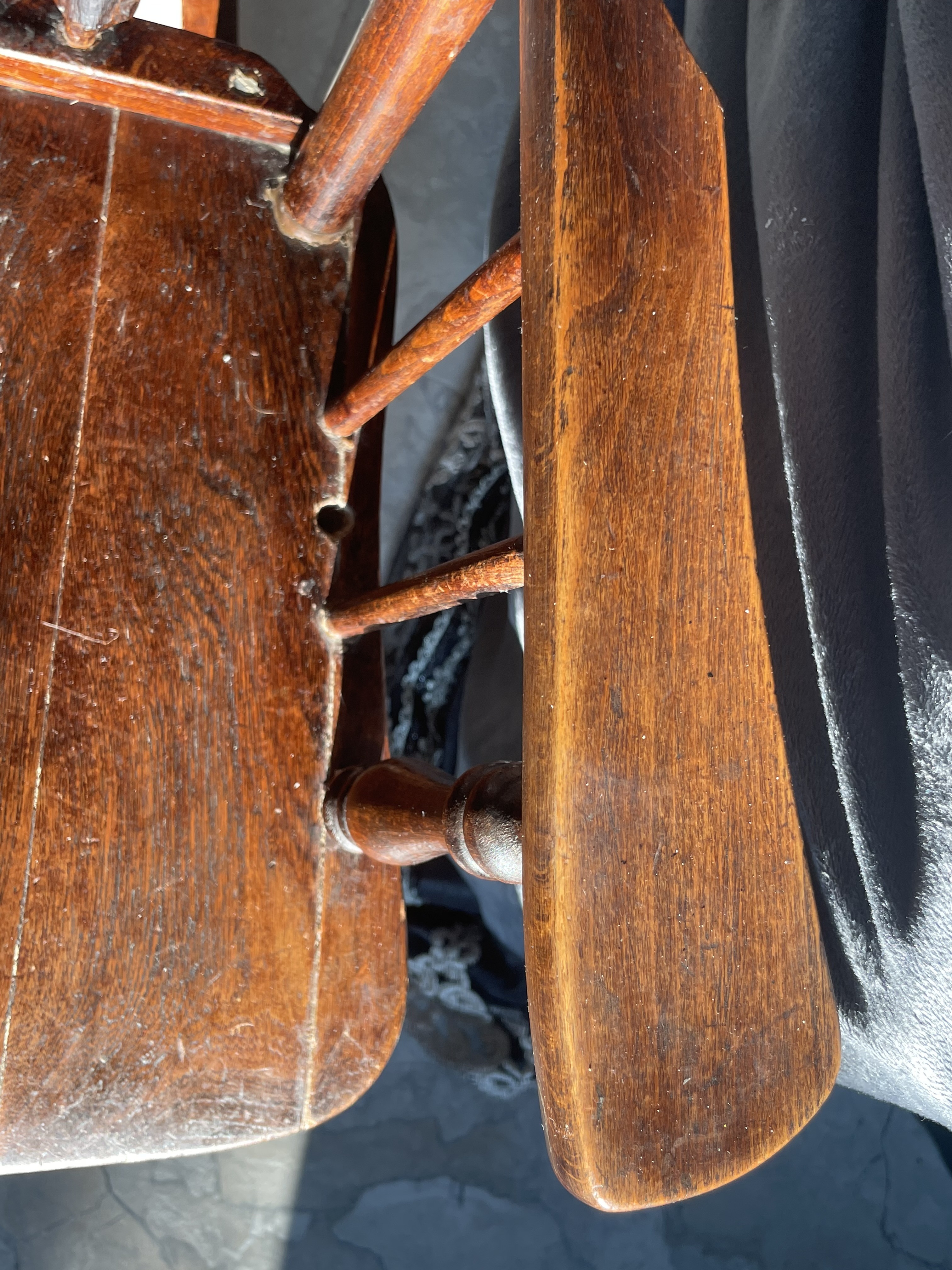Condition Assessment: The chair is in fair condition, showing signs of wear consistent with its age. Notable issues include: