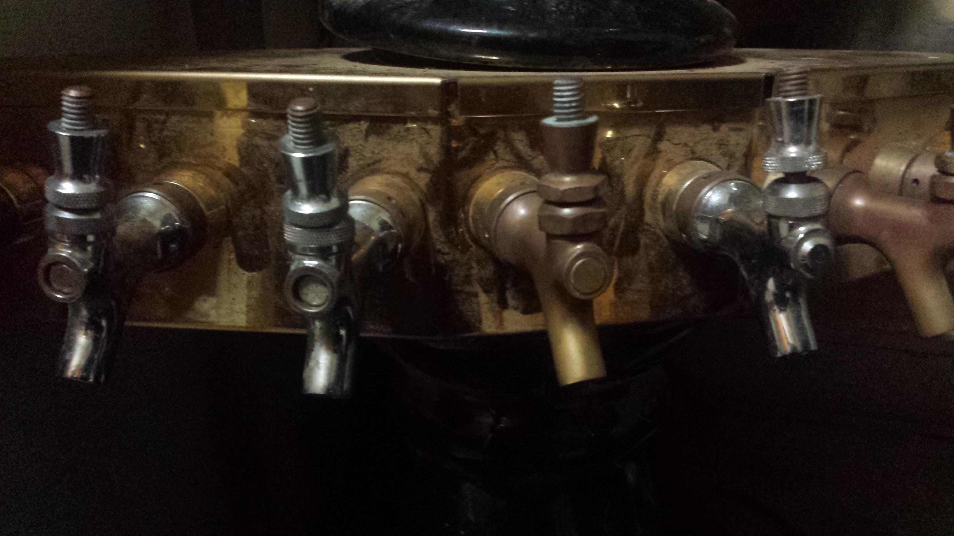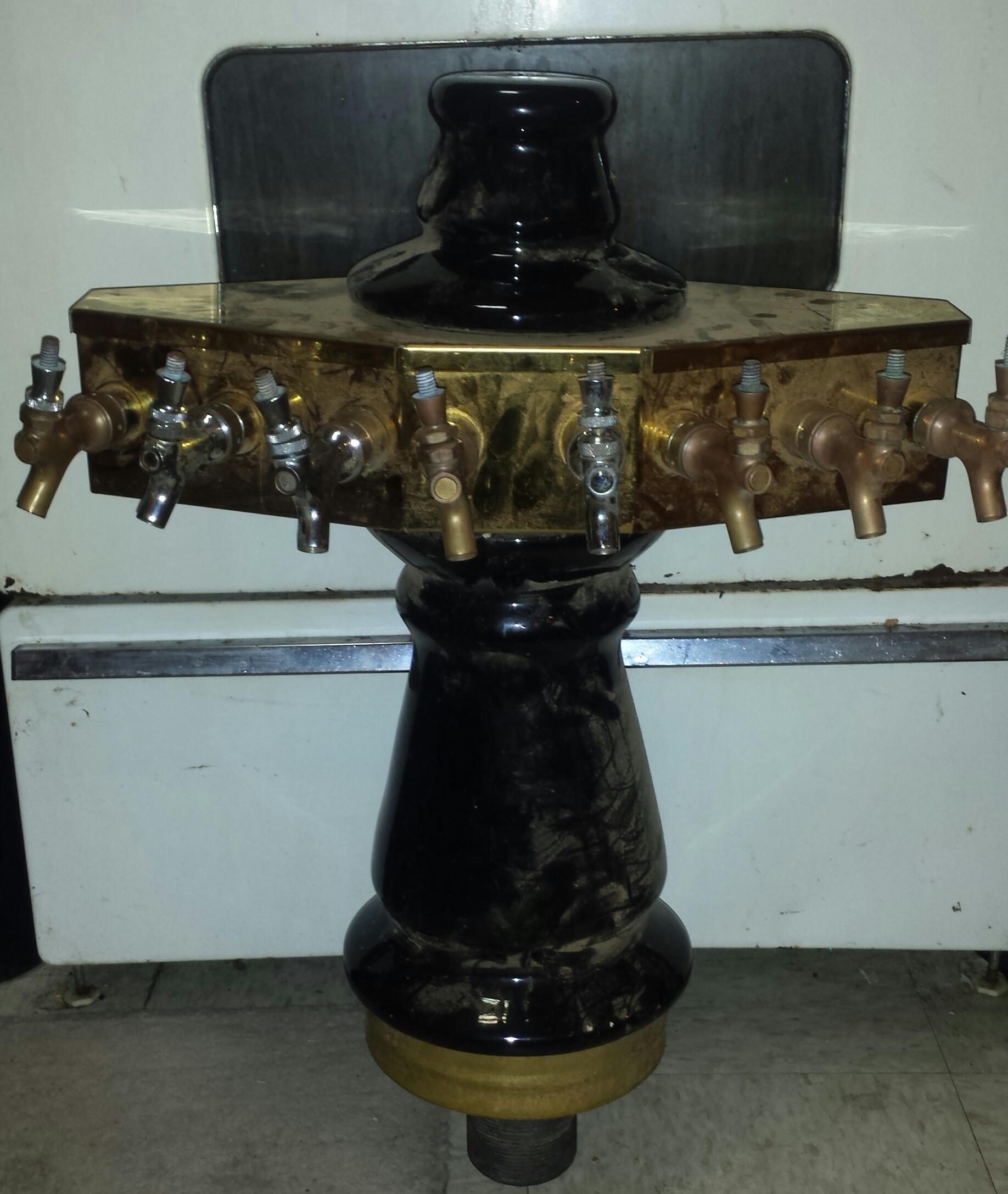 Looking for sum help in finding out some information about this mushroom style 8 handle beer tower I got at an auction I can tell sum of the faucets are newer but the older ones are copper and the black parts are ceramic any info would help thank you