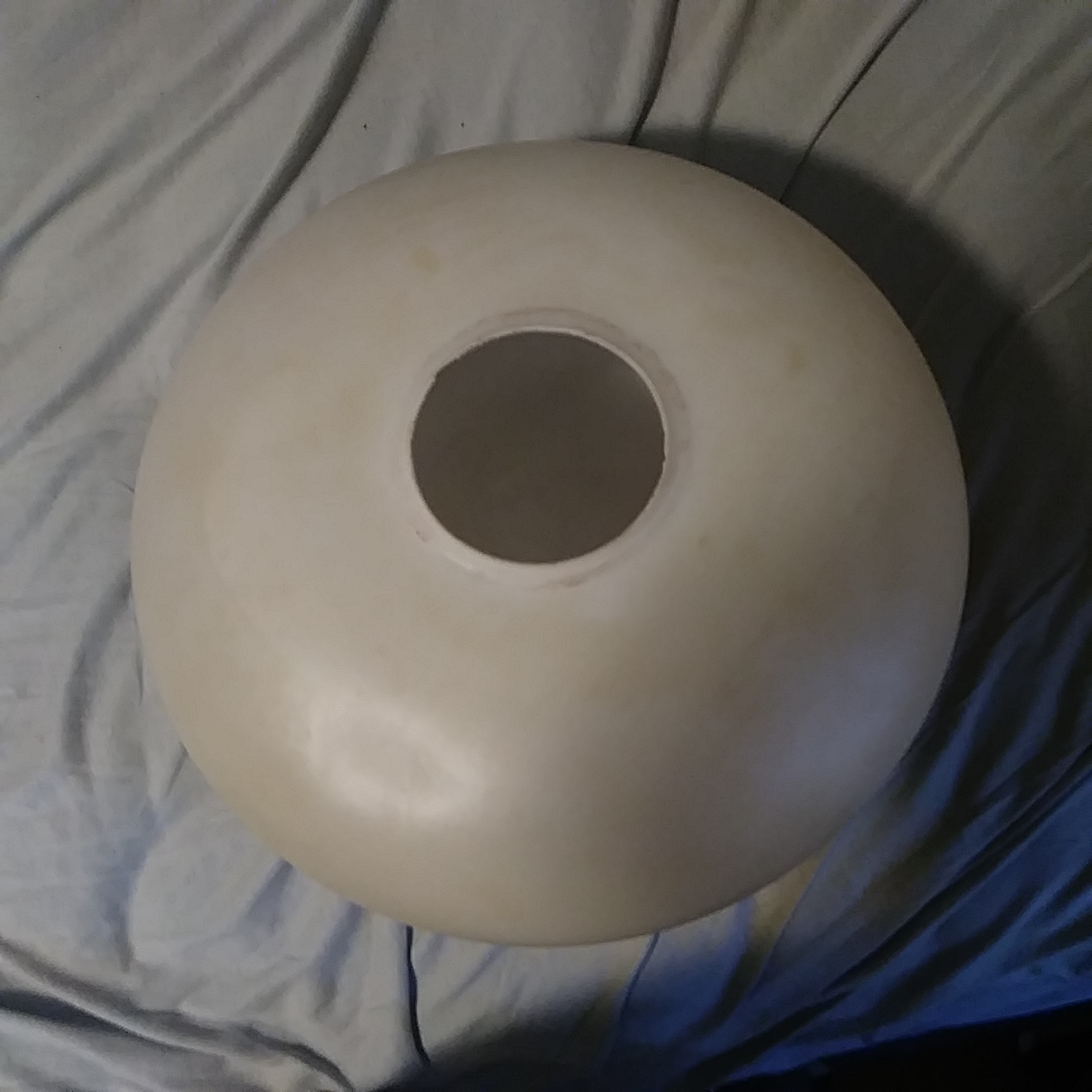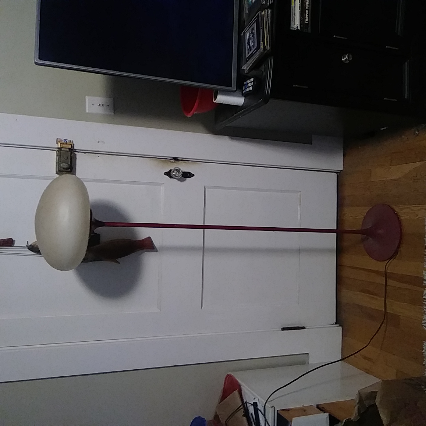 Mushroom floor lamp made by laurel lamp company. Appears to be a blown glass shade. Has 3 way switch and works fine. Is red but I think it was originally white. Sticker by socket under shade calls it a portable lamp, but it's about 5ft tall. The base has an iron weight in it.