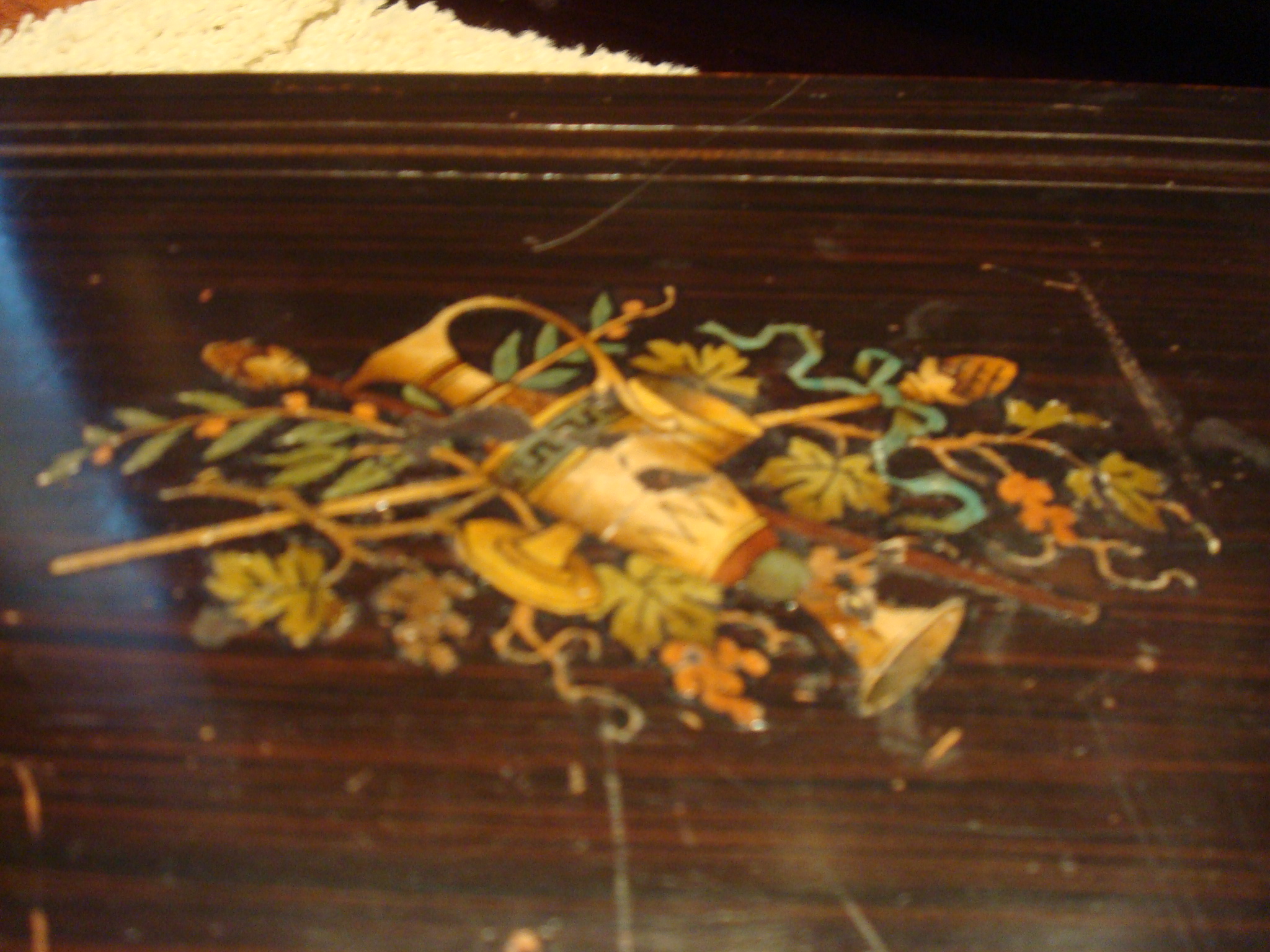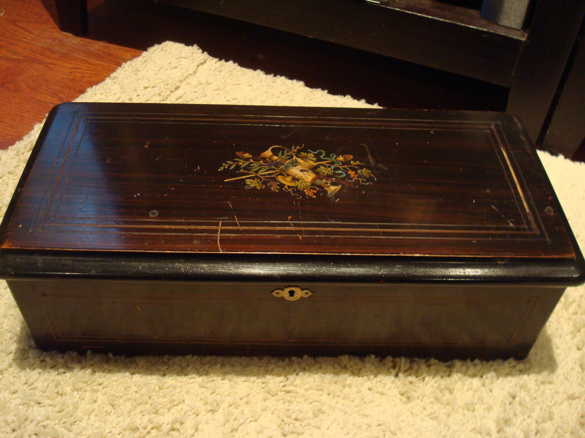 History Music Box given to my mother by a friend in Colorado Springs. The friend says her father bought it by collecting cigarette "bands"
