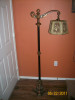 Brass and marble floor lamp. Stamped MSLC 40395 on the bottom. The lamp has a beautiful striated marble base, brass columm and 3 way lighting. It has a waffle milk glass shade. The wiring is in good condition.