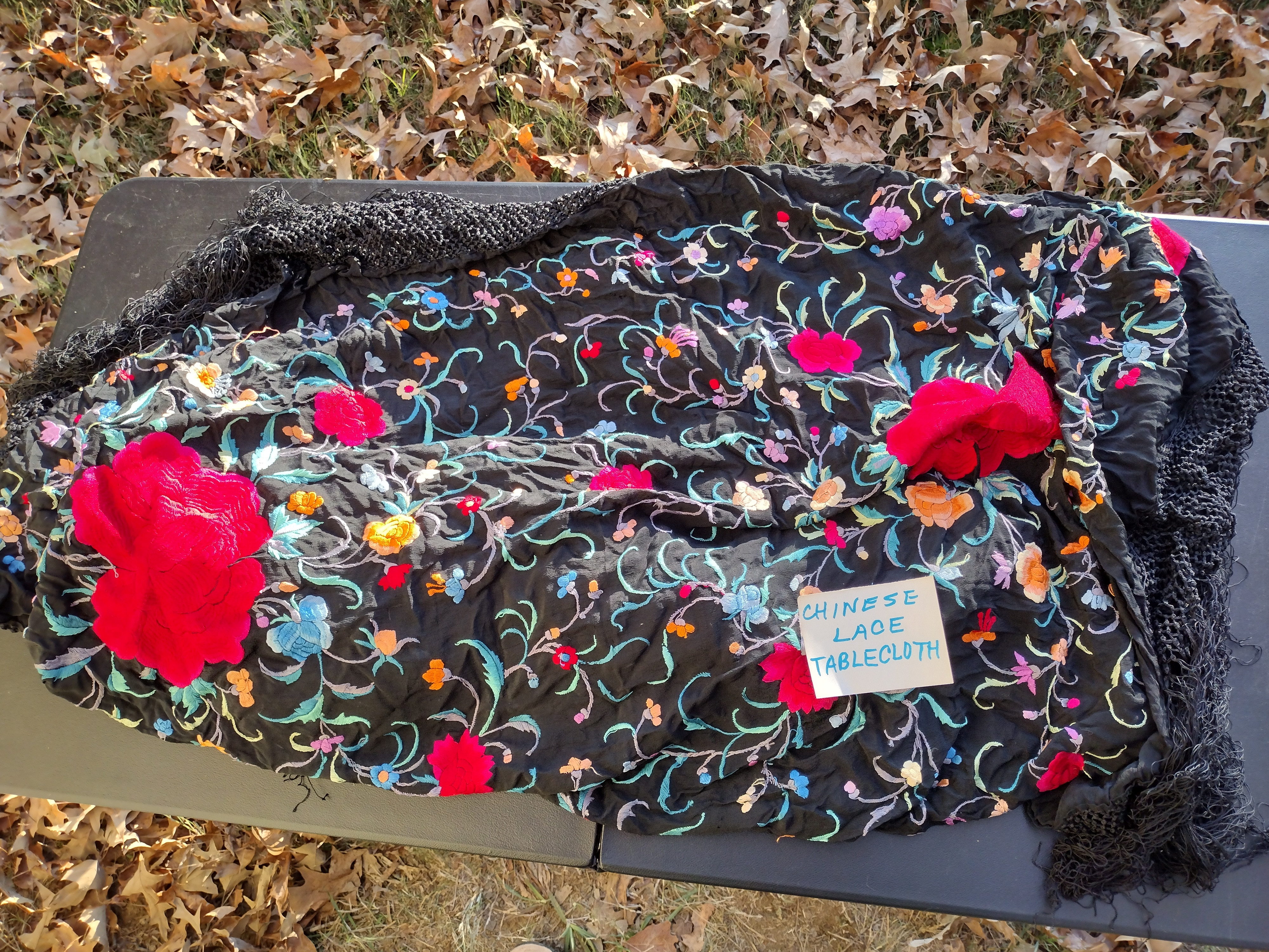 While in New Guinea and other surrounding areas he collected many handcrafted wooden items and cloth from silk. Unique to the Philippines, piña is an extraordinary textile made by weaving the fibers of the leaves of the pineapple. A beautiful Chinese lace tablecloth, this is for a very large table, there are other items that my father collected other than items from WWII.