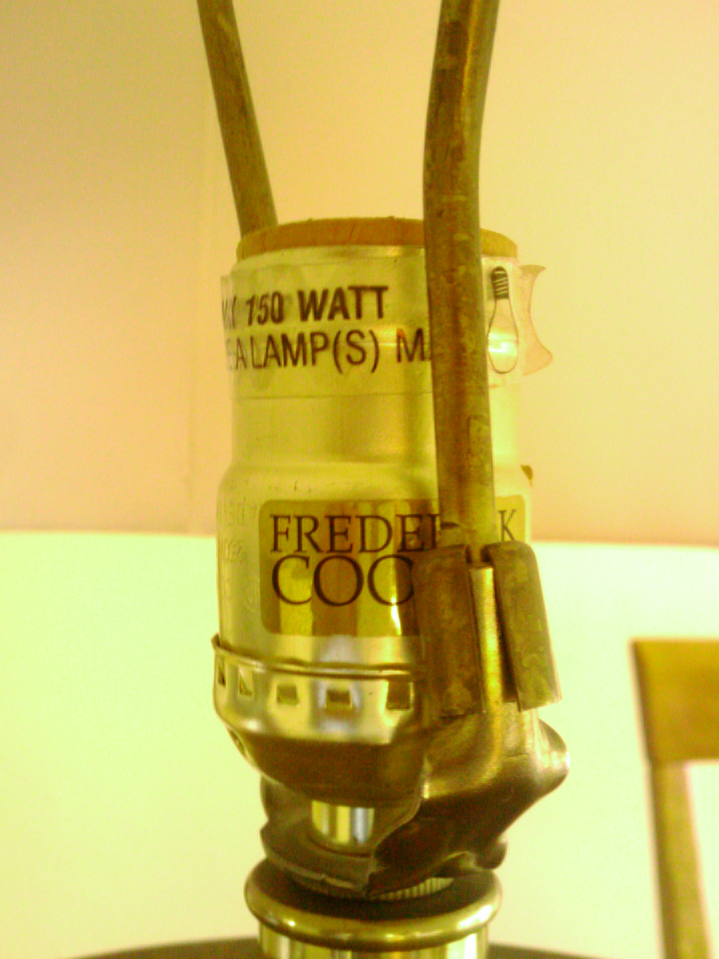Distinguishing marks frederick cooper sticker on lamp socket
