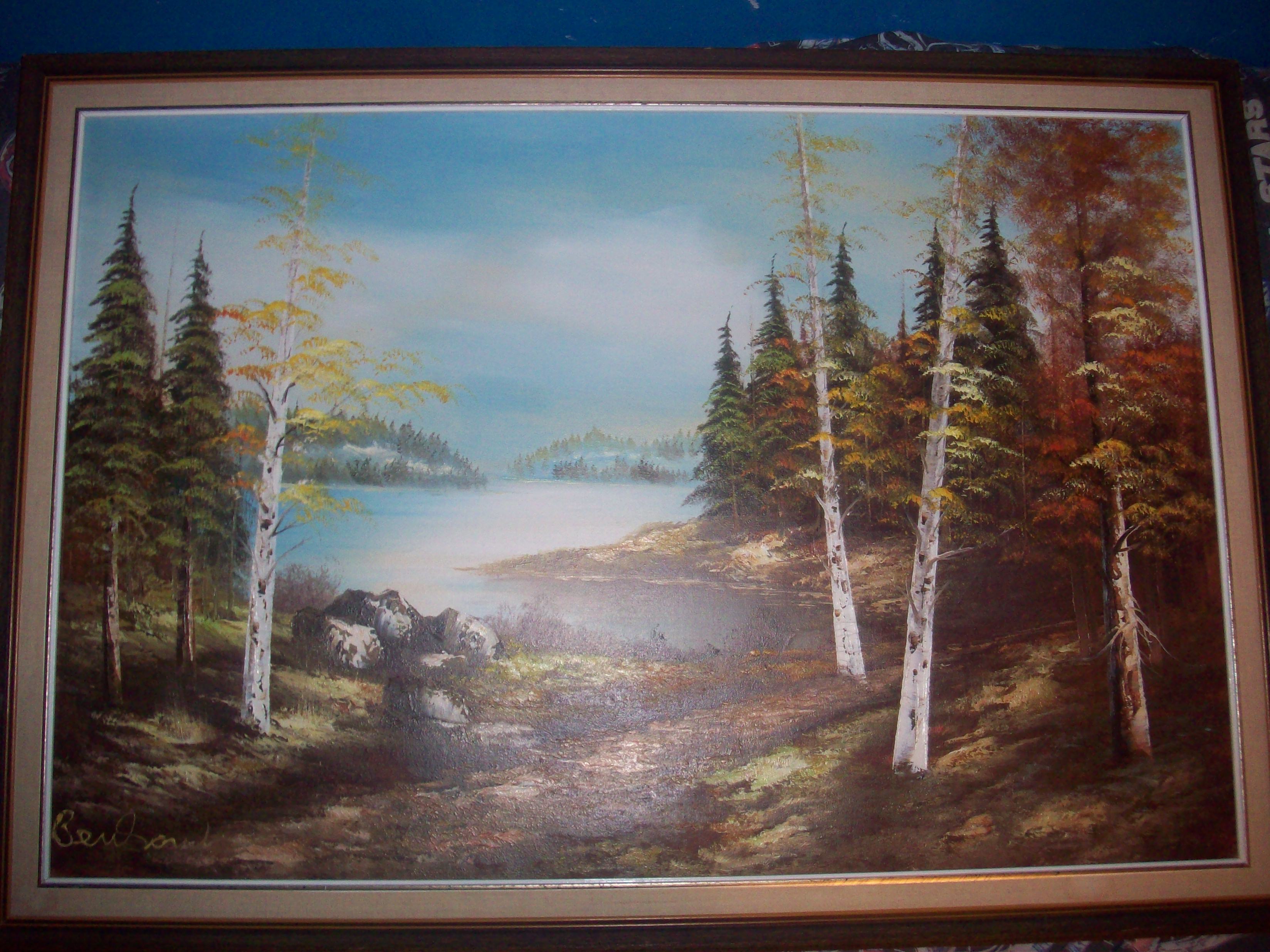 This picture is 24" by 36", it weighs about 3 pounds, it is in very good condition. And it is signed by Benson.