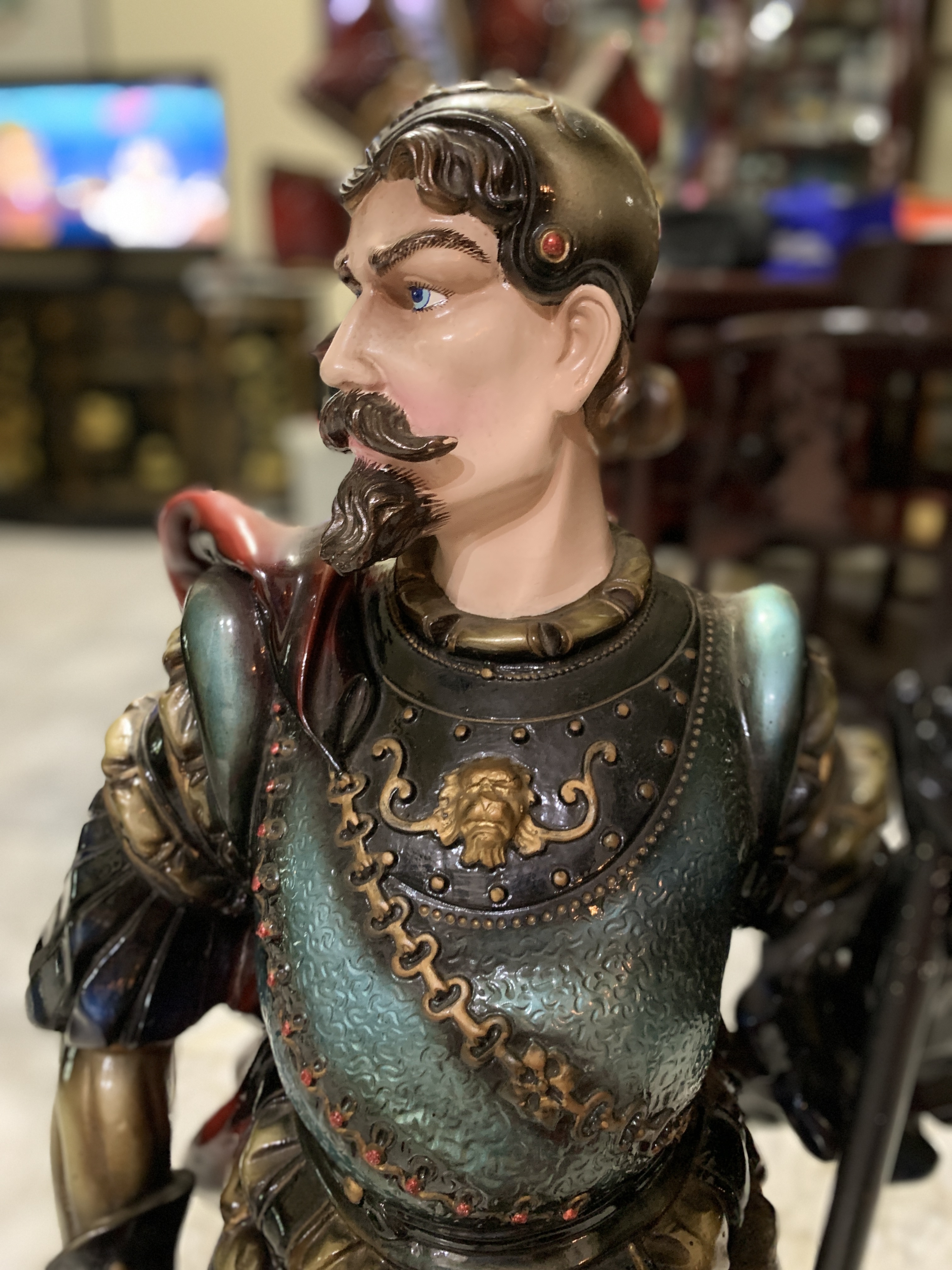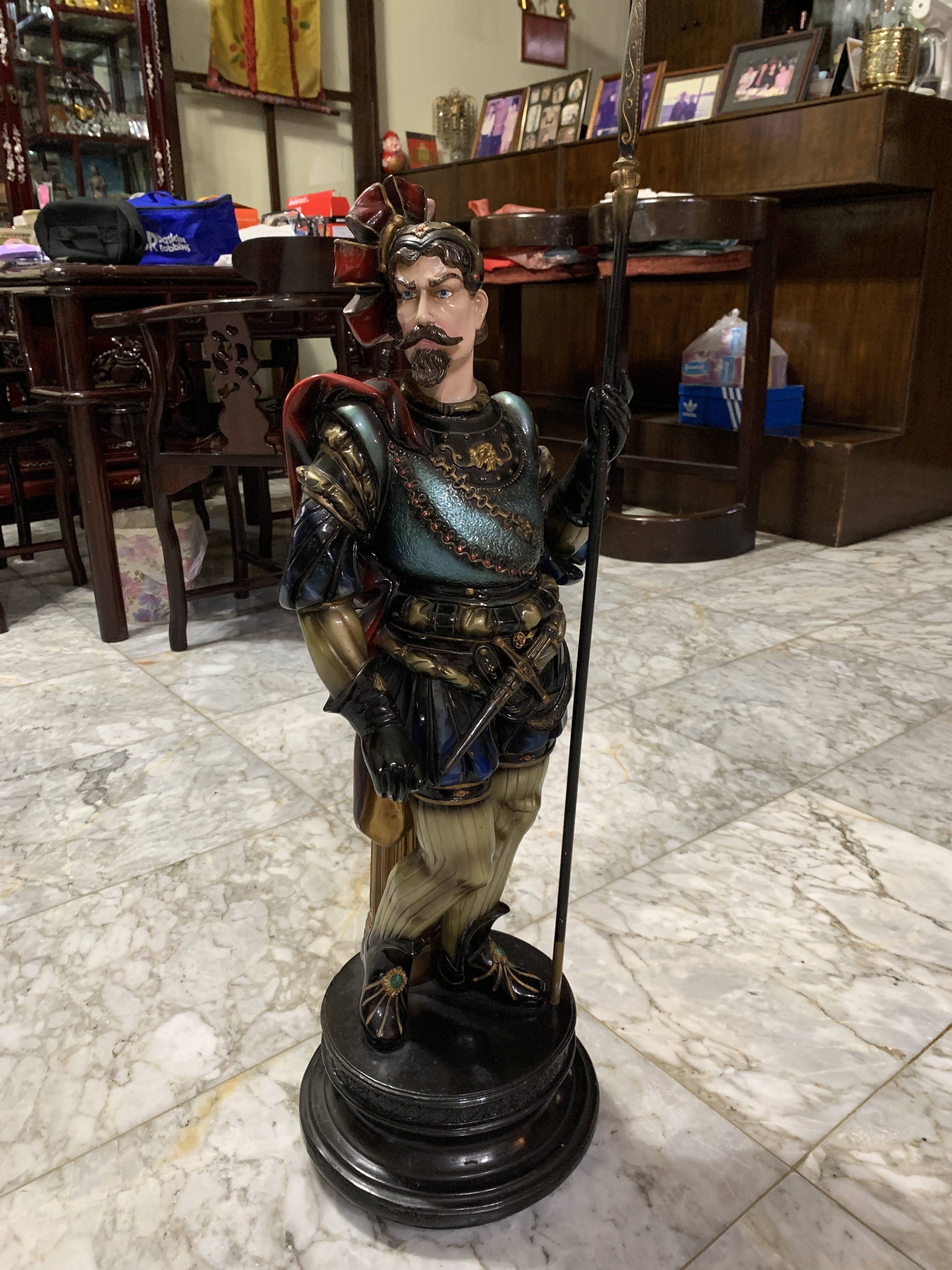 My mum bought this piece back in the early 90s from overseas using US dollars. The piece is in Indonesia now and we don’t know where it was acquired from and how much as my mum has passed away recently. Currently, the investigation about the character of the figurine is still ongoing as I don’t know where the character is from and where the piece is produced. I call it, “Herr Hamburg” or “El amigo” for the fun of it and because the piece could be depicting a German Lansknechte or a Spanish conquistador