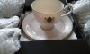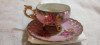 It's a beautiful floral cup and saucer with raised gold on incredibly thin china. Just holding it I feel like it will shatter in my hands.