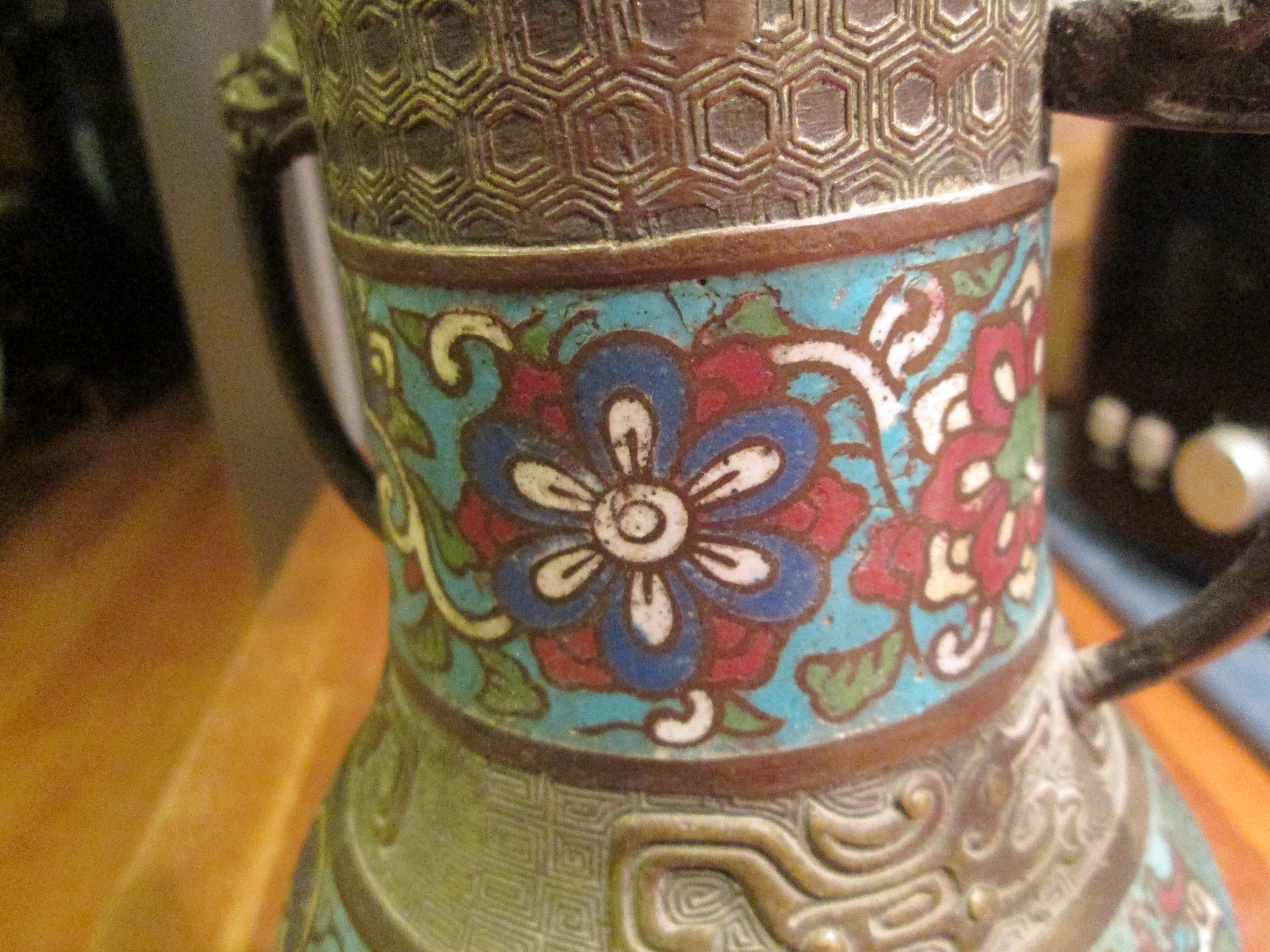 This is a Cloisonne vase made in China.
