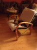 Your rocker dates from the 1880's, these were loosely based on the Aesthetic style popular during this period. Such pieces were often painted black, " ebonized" the term being used. In it's present state comparable rockers sell for under $100.00 at auction.