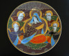 The gilded pattern appears to be chrysanthemums and 3 point leaves. It's all raised and there is a raised dot pattern around the rims.