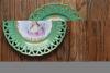 these are a matched set of turquoise colored glass lamps with a picure of Josephine on one and Napoleon on the other. they have a long cylinderacal chimney and a round opaque glass one as well. they have a metal base. they stand about 24 inches high