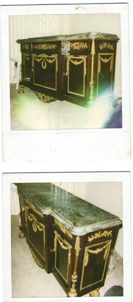 Distinguishing marks ornate brass/bronze ornaments on doors, drawers, cabinet