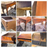 This is a desk with a stamp inside the drawer stating: Furnished by Nathan Straus & Sons, Inc. 119 Fifth Ave New York.