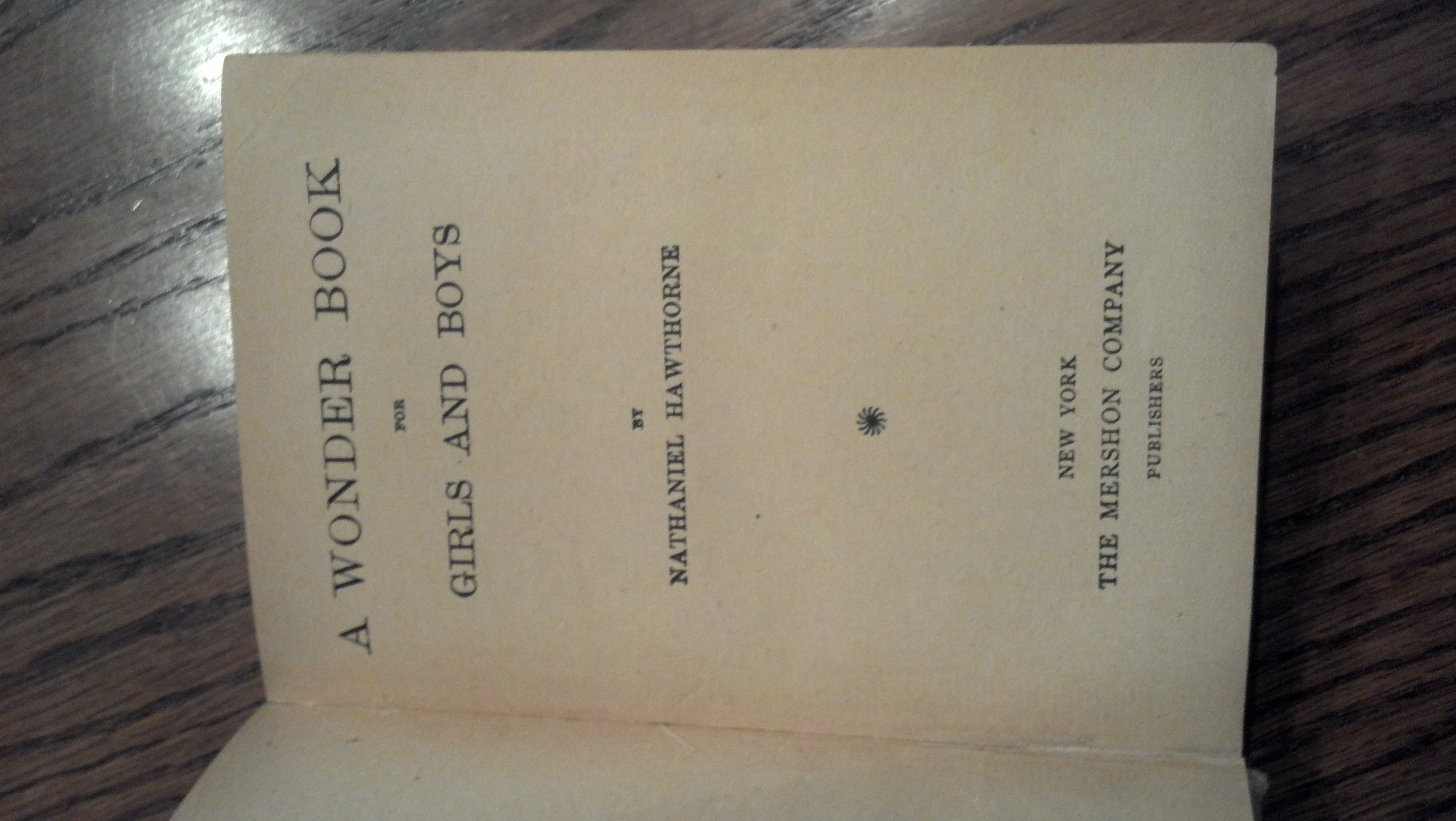 Vintage bok authored by Nathaniel Hawthorne. Book is titled, "A Wonder Book for Girls & Boys. Book is in excellent condition. Very neat item to have for displaying.