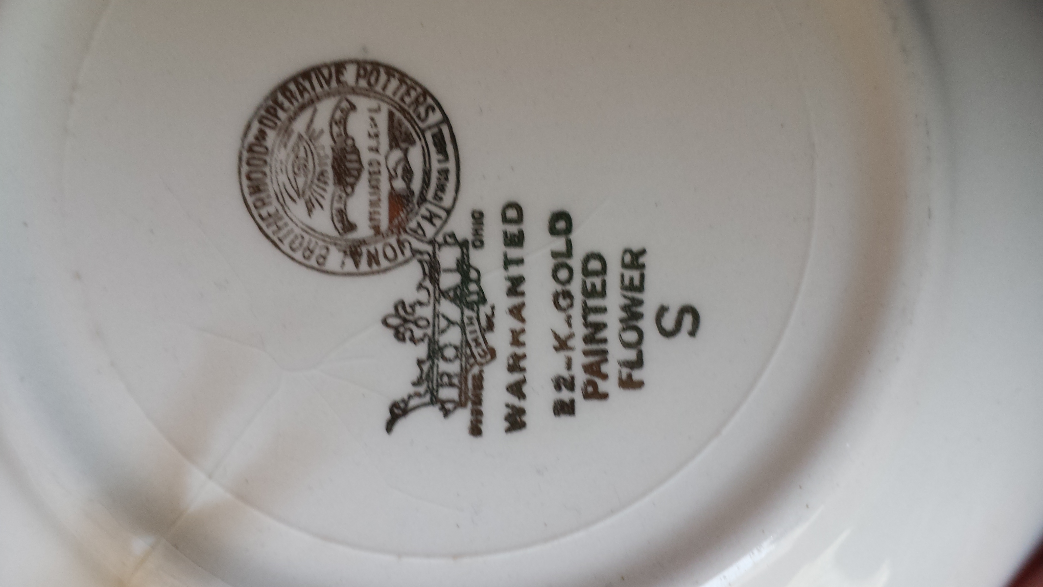 vintage set of china from the National Brotherhood of Operative Potters. Circa 1940's - 1950's. $100/$200. they sell pretty good, but it takes awhile for the right person to come along.. good luck.