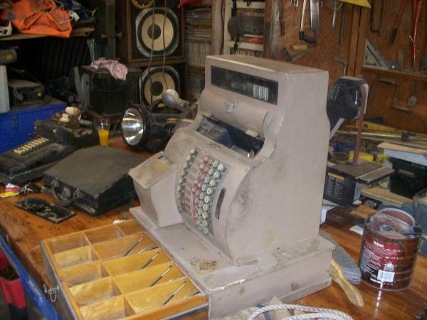 antique cash register with a sold date on it of 11/19/1956. very good condition still has all the original info attached too it.