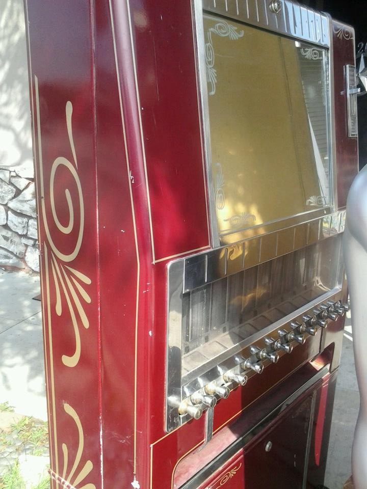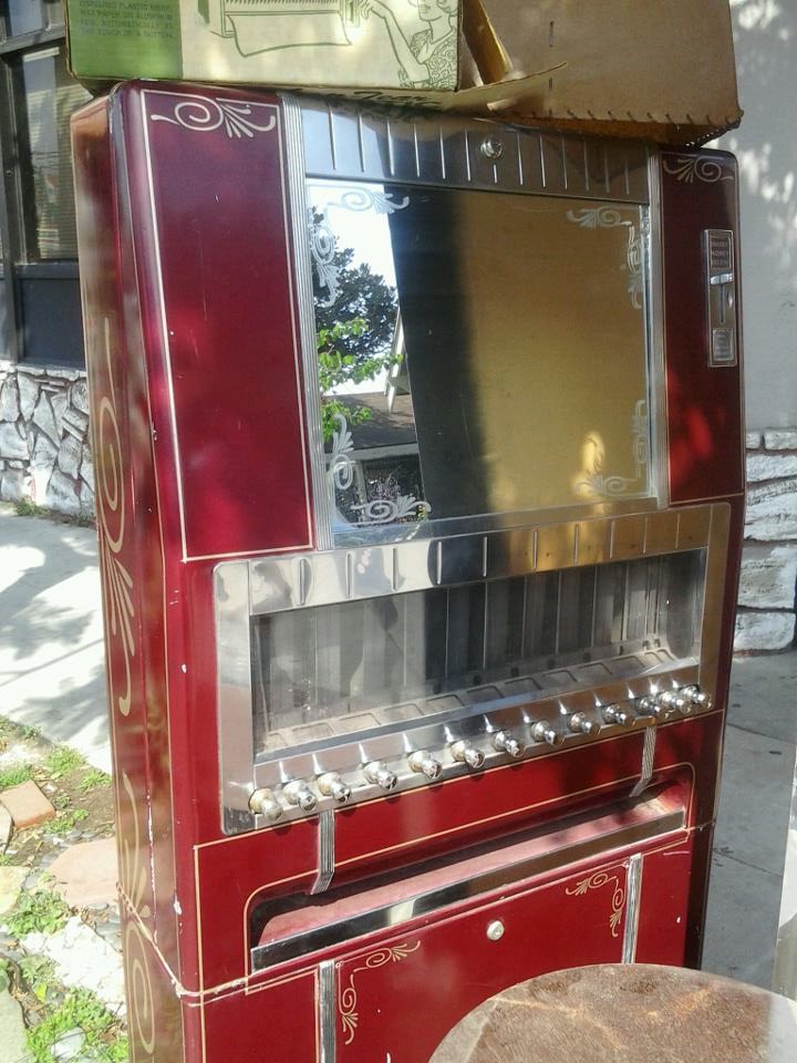 Vintage National cigarette vending machine, upright approximately six feet