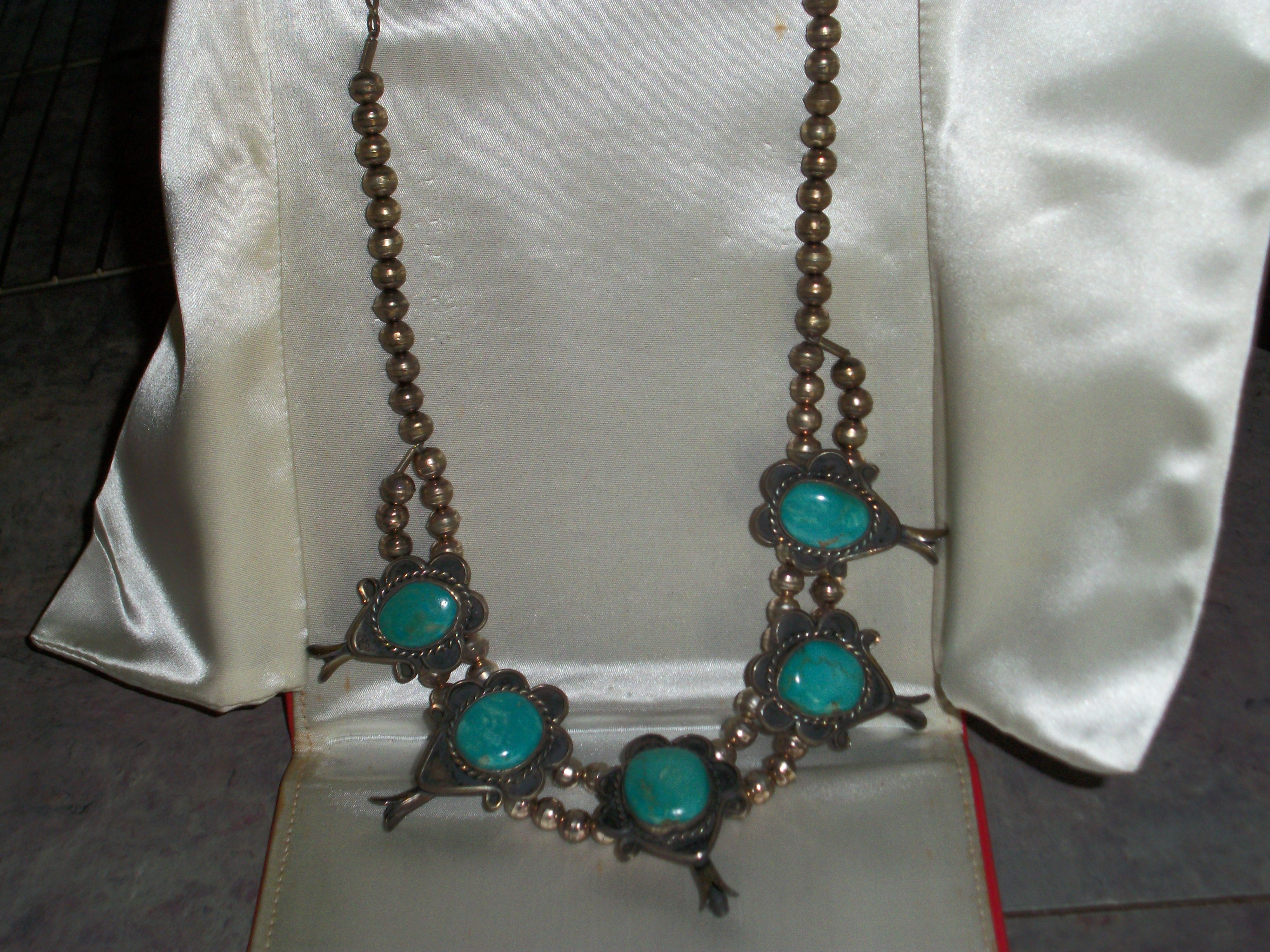 This is a beautiful item... very nice. The price of sterling is near $35 an ounce and native american items always carry a big premium. Your necklace has nice value on that alone. Do yourself a favor... go to E-bay and search for prices... you will find it's value there. Your necklace is easily worth $500 and could be much more... it's a huge piece and valuable... do your homework and yoyu will get paid!