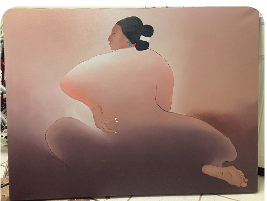 48x36” acrylic painting on canvas of a Native American woman signed Sarryl and noted as “after RC Gorman” on the reverse. Does anyone know the artist or estimated value?