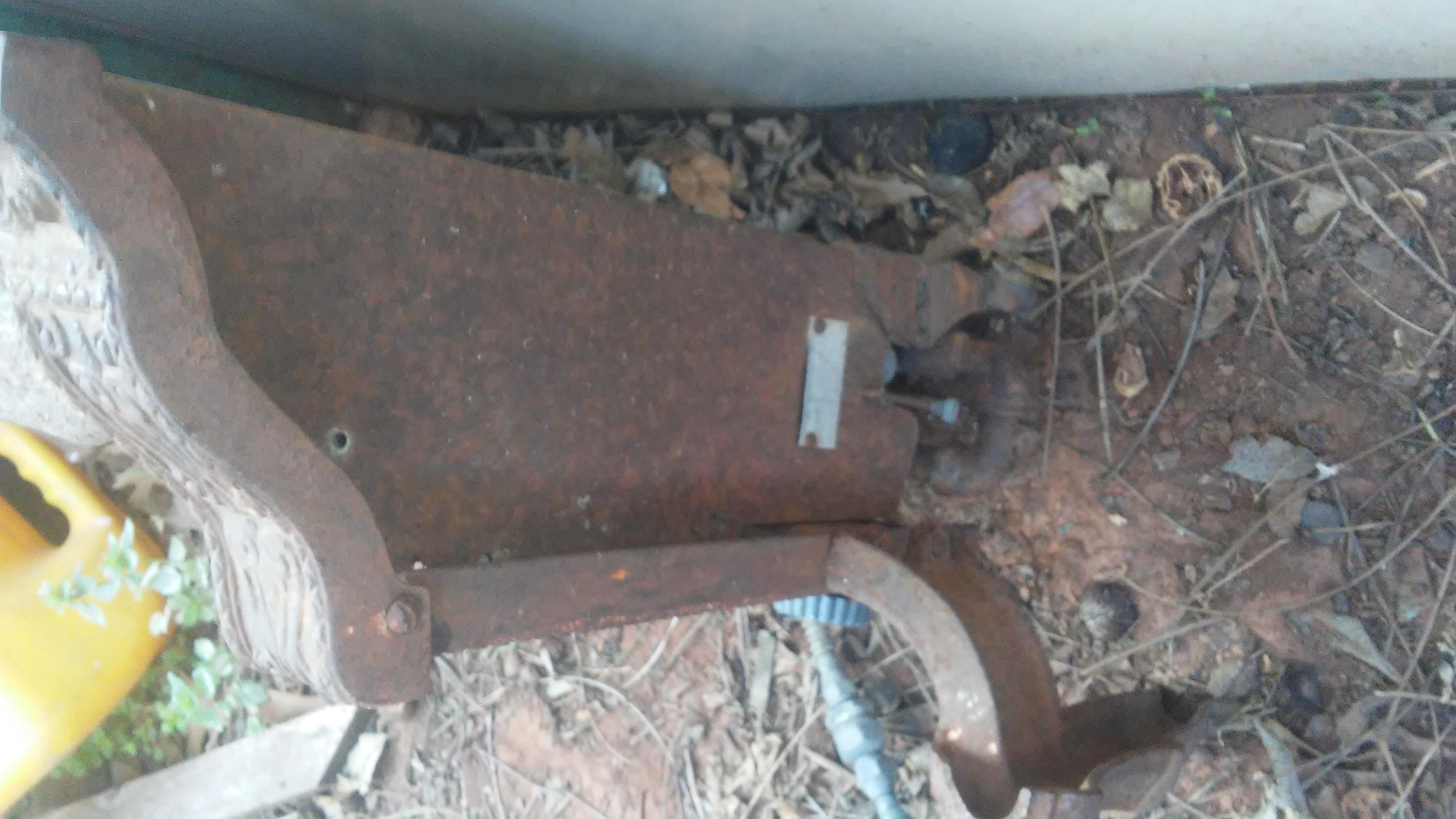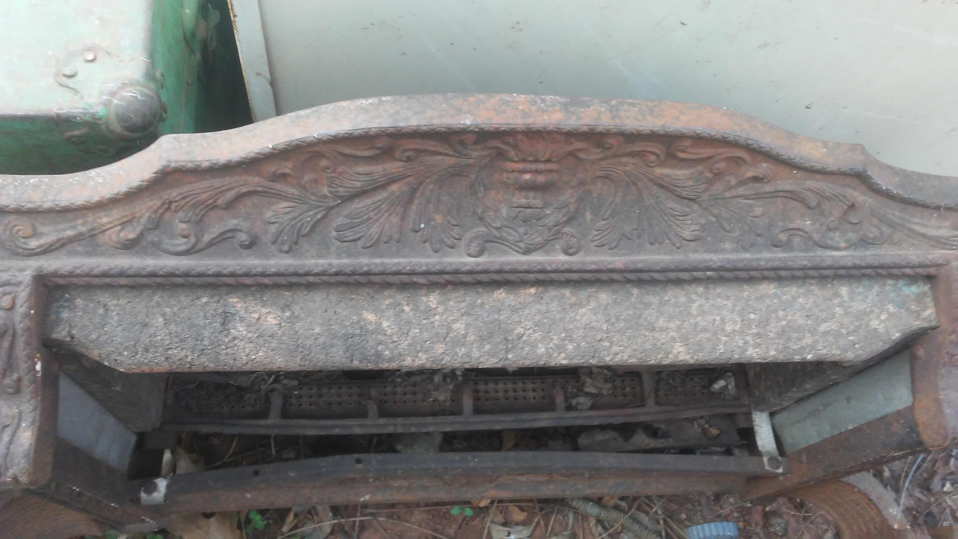 Metal Natural Gas Heater has a metal tag screwed to the left side that is partially broken off. This tag appears aluminum and reads "MILLER-JACKSON CO.
