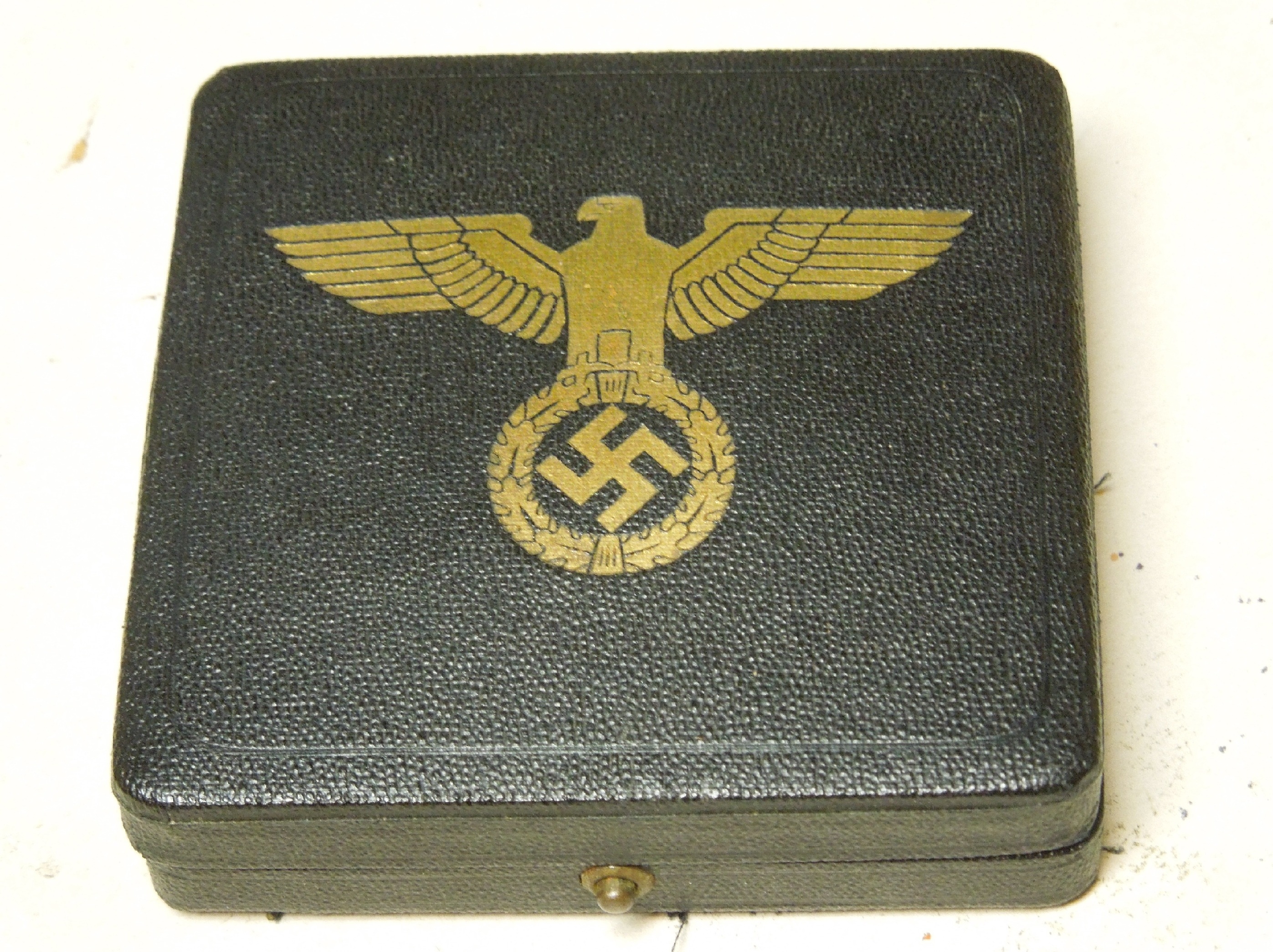 Set in a dark blue box embossed with the Nazi Emblem (Eagle and swastika). The mark on the box is Preuss. Staatsmunze Berlin c 2 I believe this is the State Coin Mint.