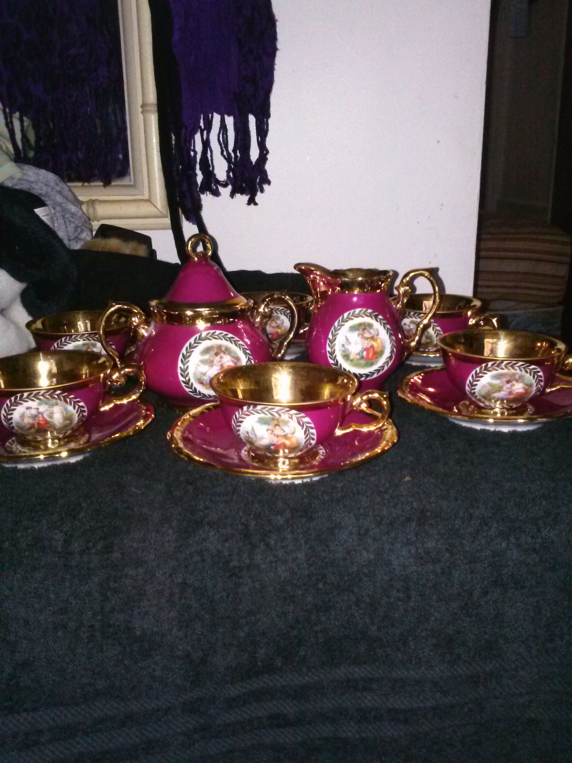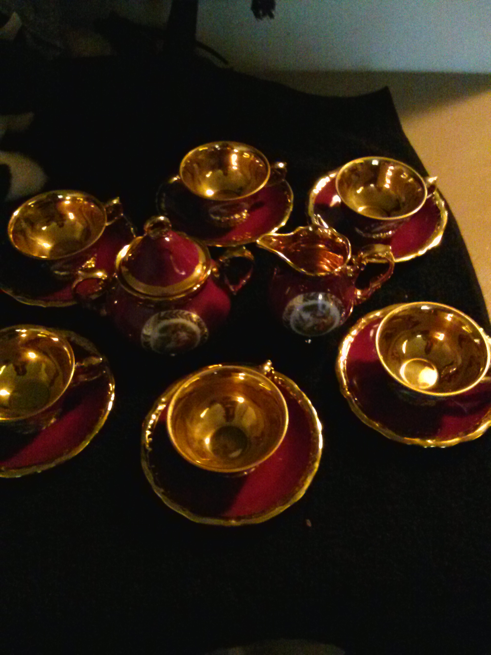 I have a tea set that I picked up at a flea market. I will post a pic of it or two. I can't find any information about it and I'm wondering about it's worth? The only identifying marks on it are Czechoslovakia HU 305. It's 24kt gold. Very beautiful. I tried to research it on the internet. But, can find nothing out about it.