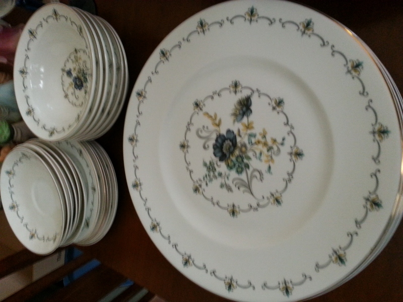 I have inherited a china set and would like to know the name of the pattern, when it was produced and approximate value. There is 6 dinner plates, 6 saucers, 6 bowls, 6 dessert plates, 6 tea cups, 4 wine glasses & sugar & creamer.