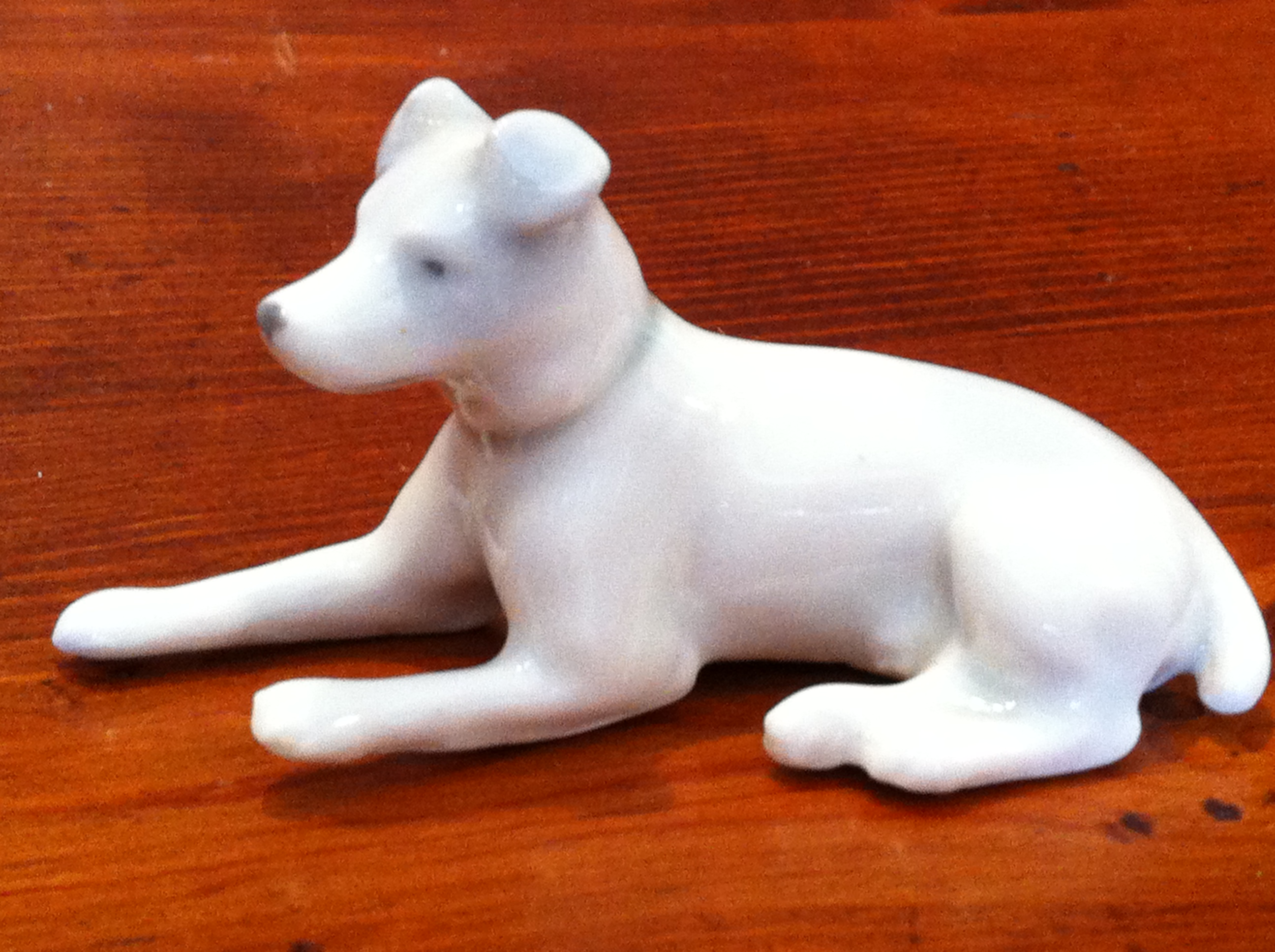 I have this very delicate, very small figurine of a dog. I have been unable to determine the maker of this figurine. Can anyone help?