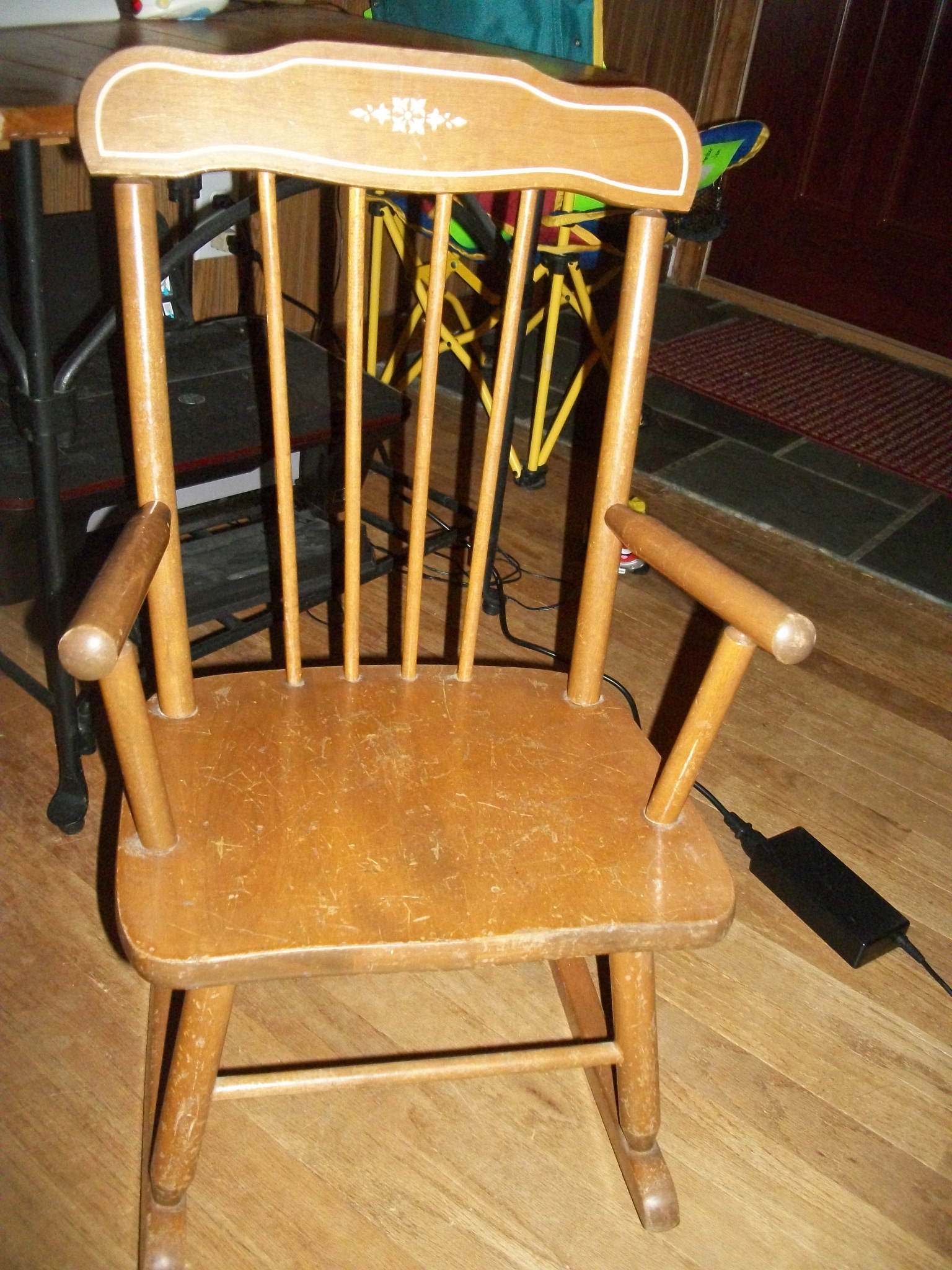 I am wondering about the worth of this chair. It is a child sized rocking chair. It is a golden brown with a picture/stenciling of a flower (I think) on the front. On the back is a sticker that identifies it as "Oak Hill Made in the U.S.A. Fitchburg, Mass." Any idea of the worth?