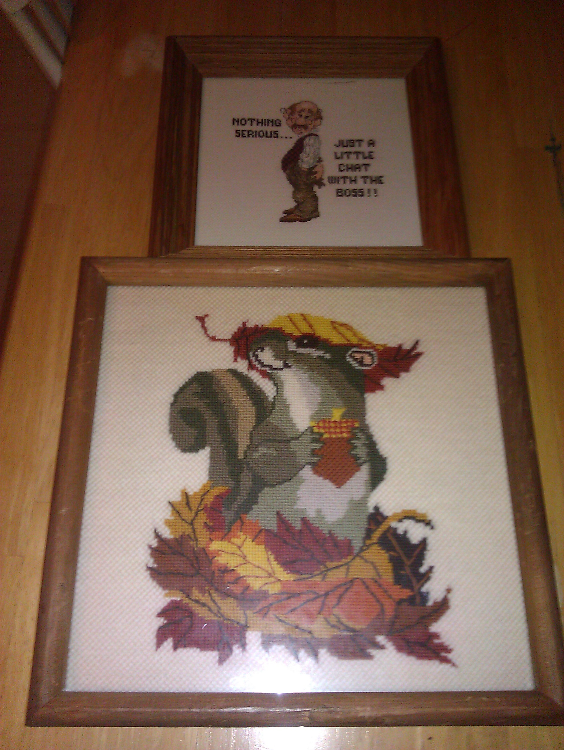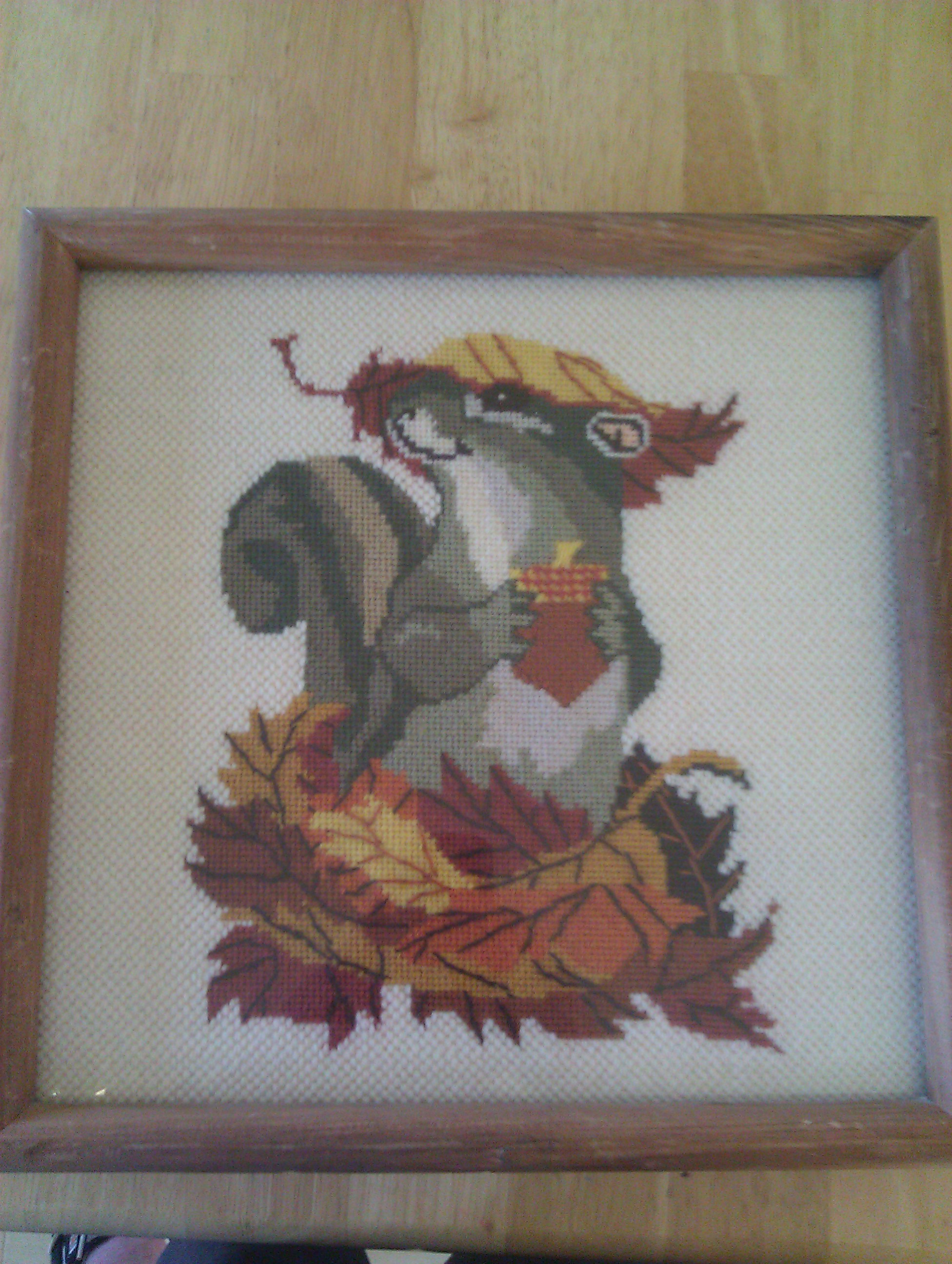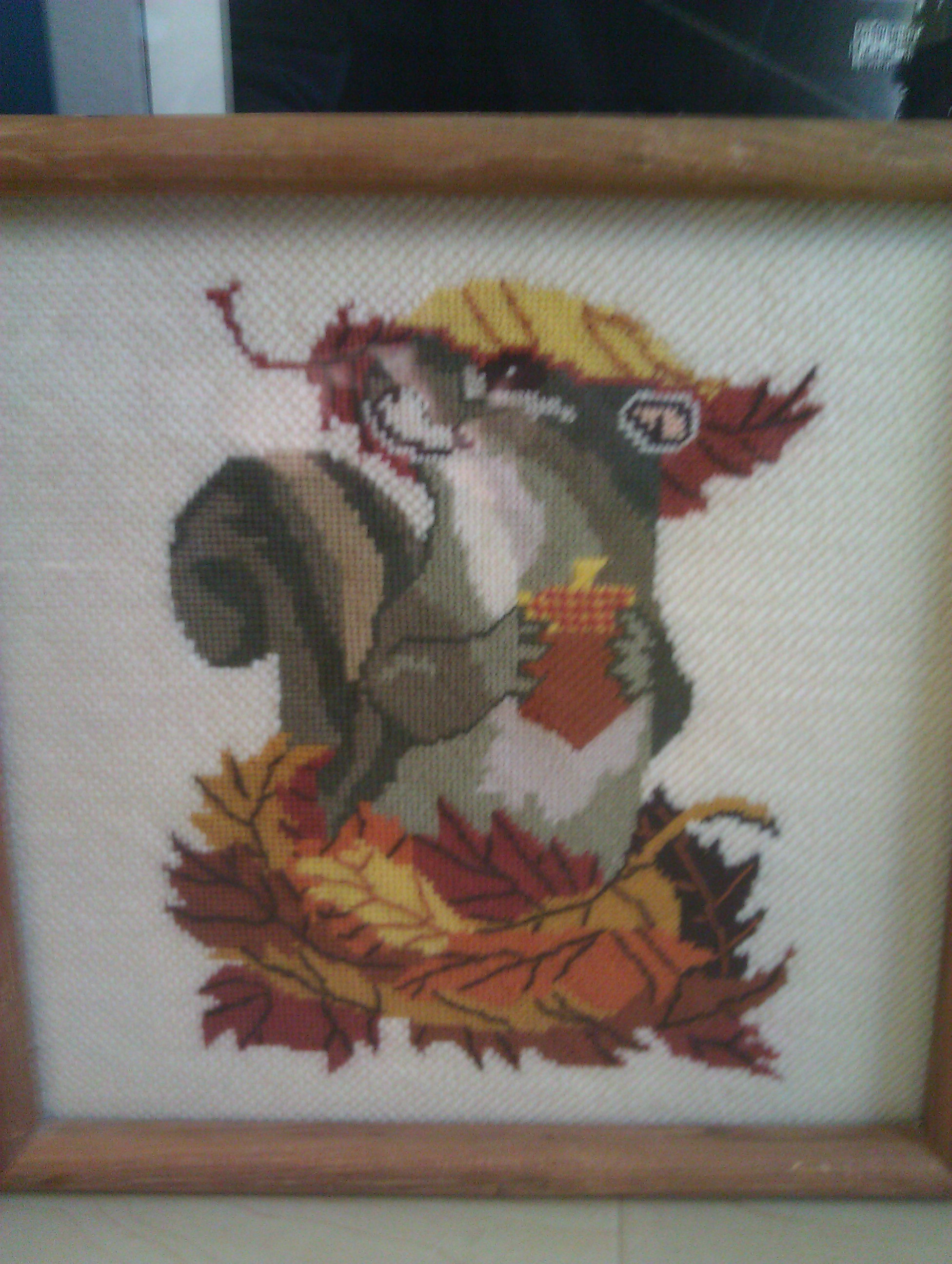 This is a needlepoint sewing piece in a 13x13 wooden frame. It looks to be from the 1970's but i really dont know. It is a squirrel holding something with autumn colors and leaves. It is in great shape with no mistakes in the work. The frame seems to be old but no idea how old. I want to get an idea of how much this is worth or a price range it could be sold for.