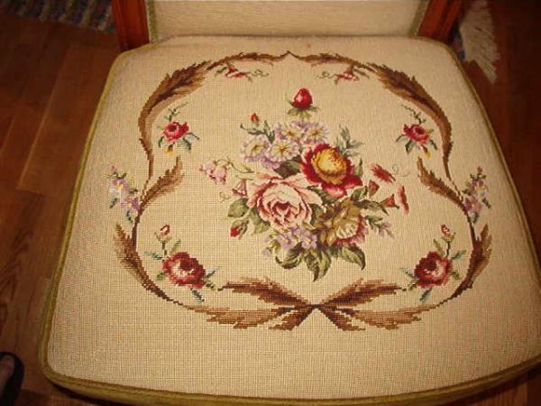 Exceptional Wool Needlepoint on Back and seat of chair. No stains or wear.