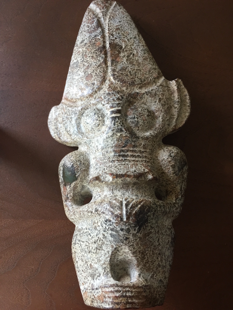 I purchased this at a pawn shop for about 200 dollars. I was wondering if it was mayan or chinese. It weighs about 4-5lbs and has some markings on it that make it look more like jade. I was told it was made of nephrite. I was wondering if anyone knows more about it and an idea of it's value. Its about 8inches tall and two wide.