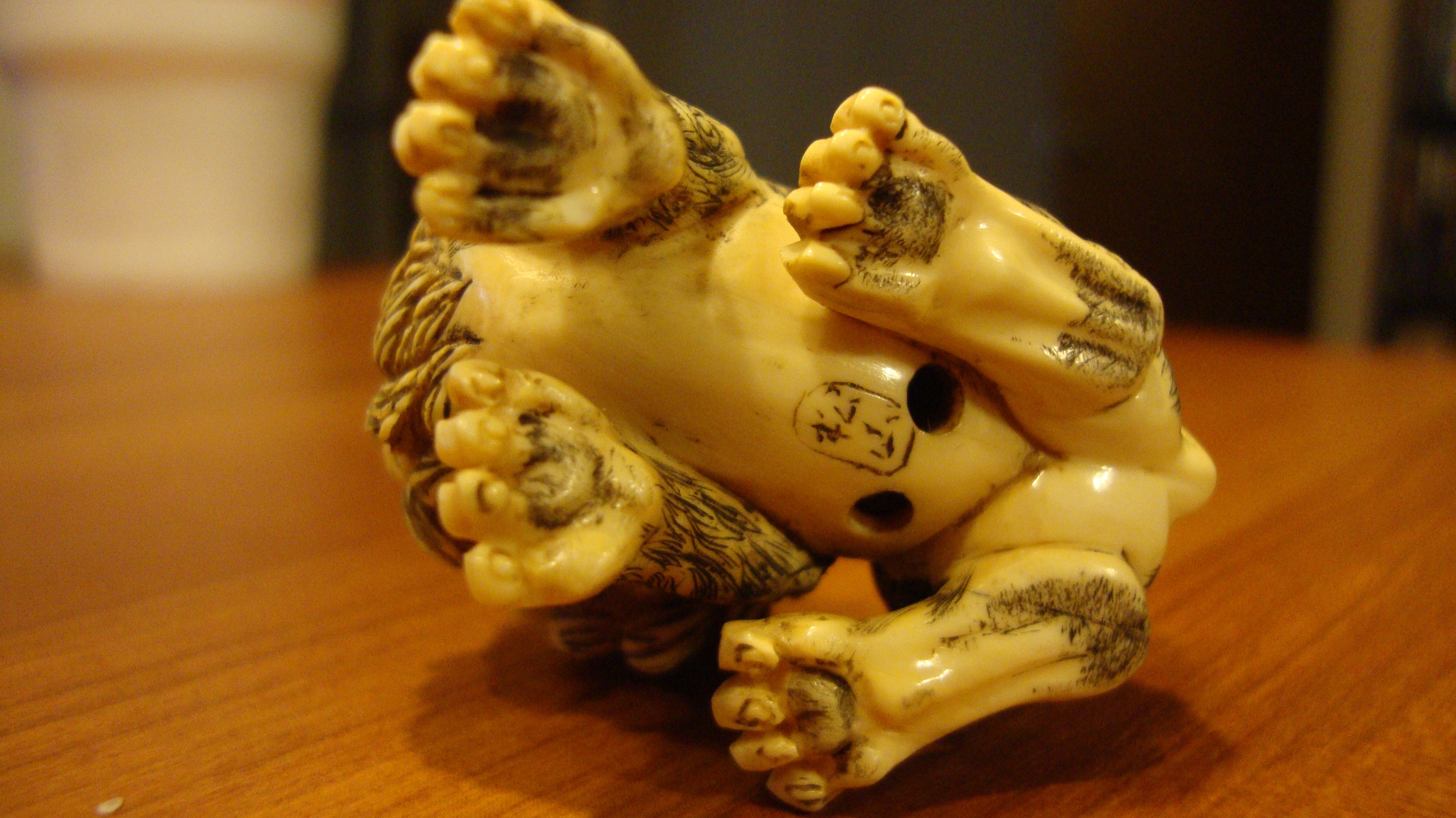 I bought this Netsuke at a estate sale with some other Ivory pieces that i thought were very rare and i had never seen anything like them before. I took all of these pieces to my local friend that sells antiques and he confirmed that they were indeed real Ivory and told me what this piece was and told me that it could be worth alot but he does not know enough about Netsukes to offer a fair estimate. It is incredibly detailed and right now is the prize of my collection i am only hoping to find out some more information please.